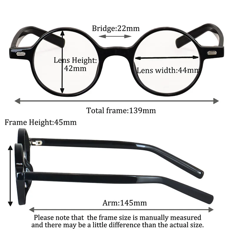 Multifocal reading glasses men women round glasses small size lens wide bride high diopter single vision glasses myopia 12.0