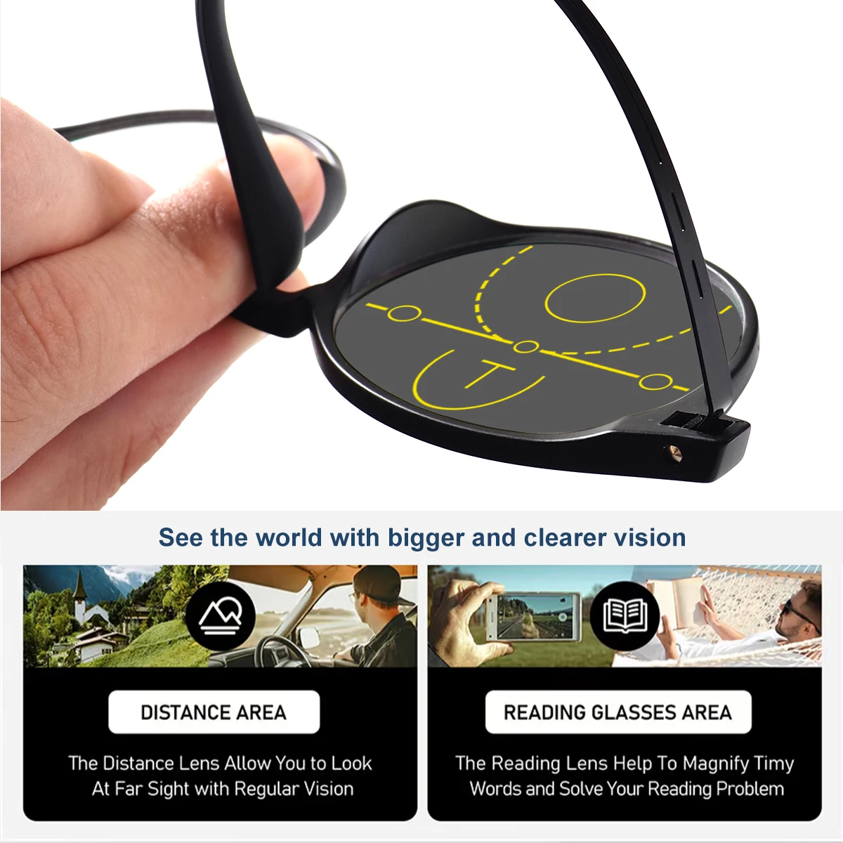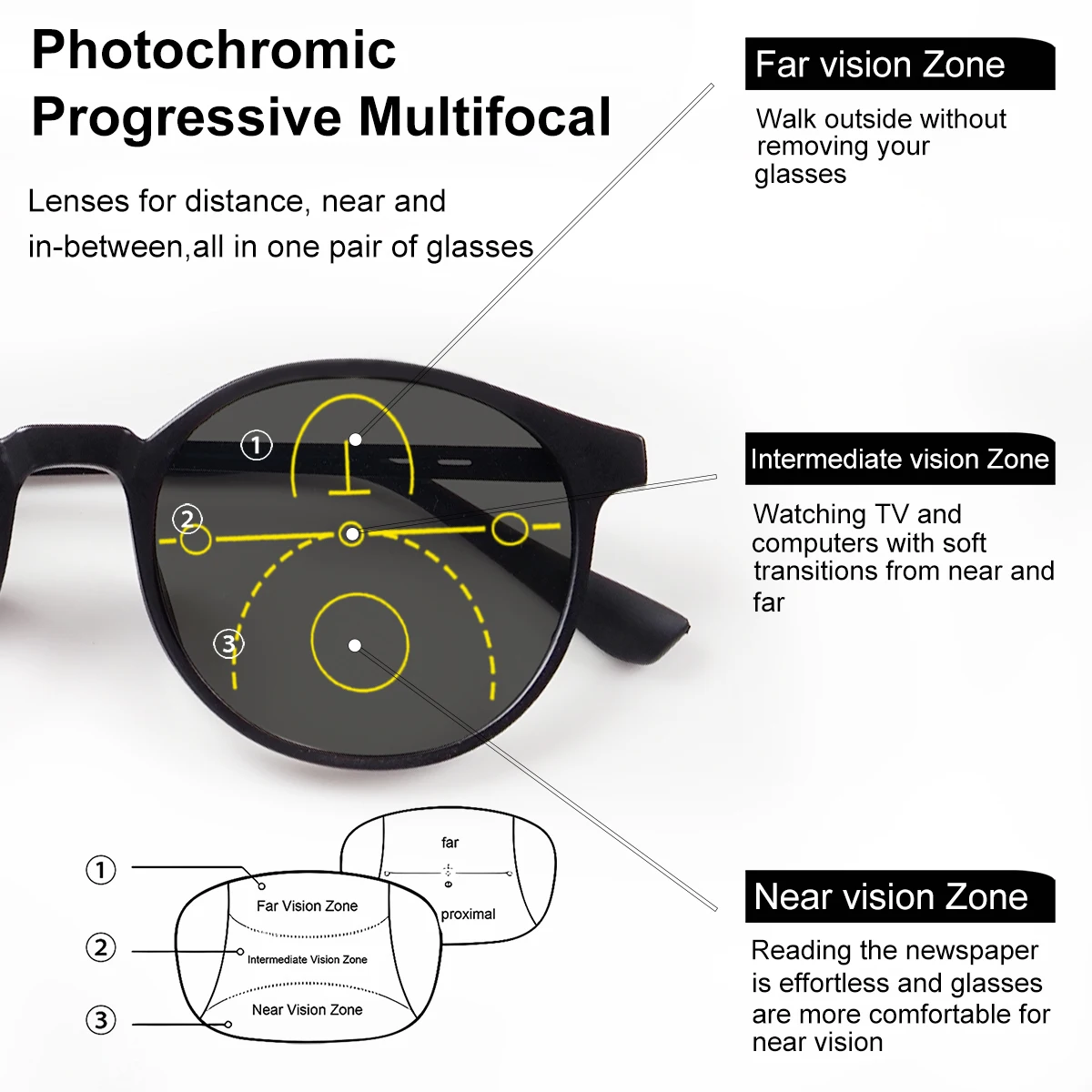 Progressive Multifocal Reading Glasses, Photochromic, Clear Vision, Round Frame, Lightweight to Wear, Stylish Appearance Suitable for Both Men and Women