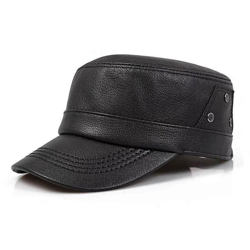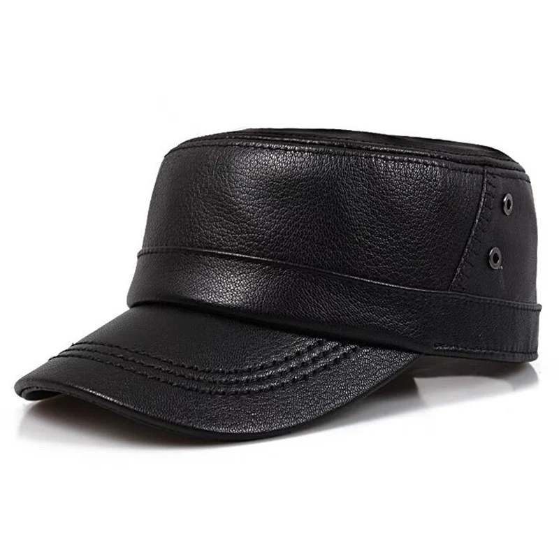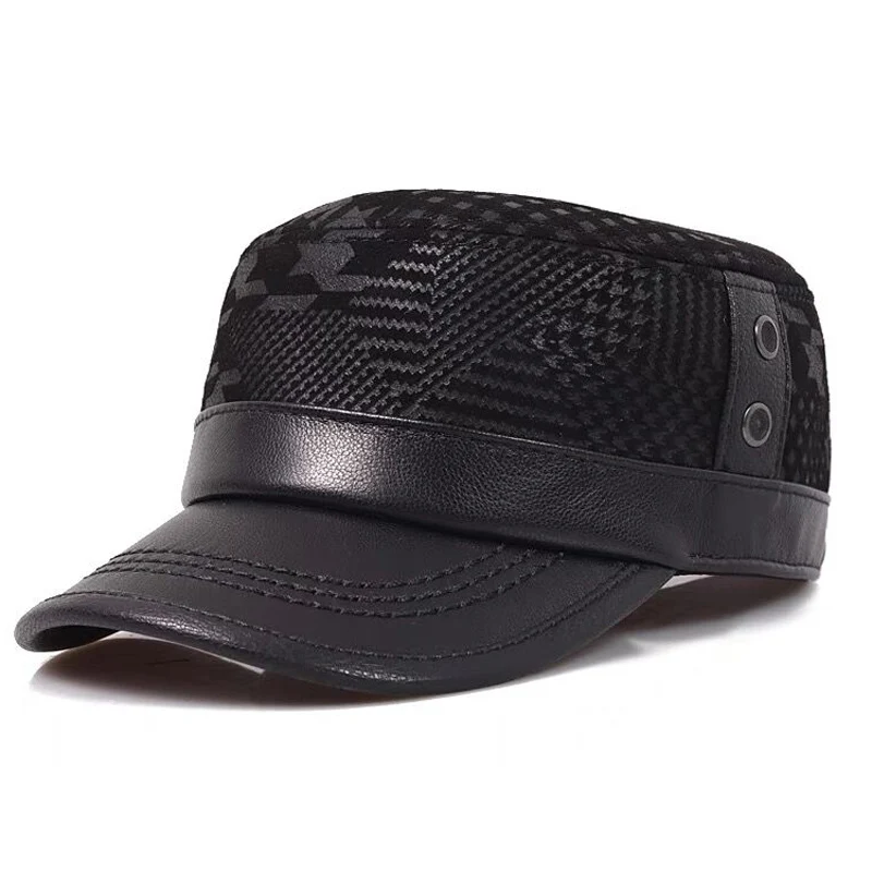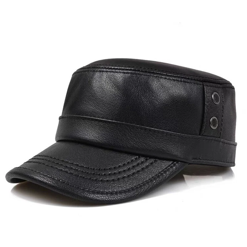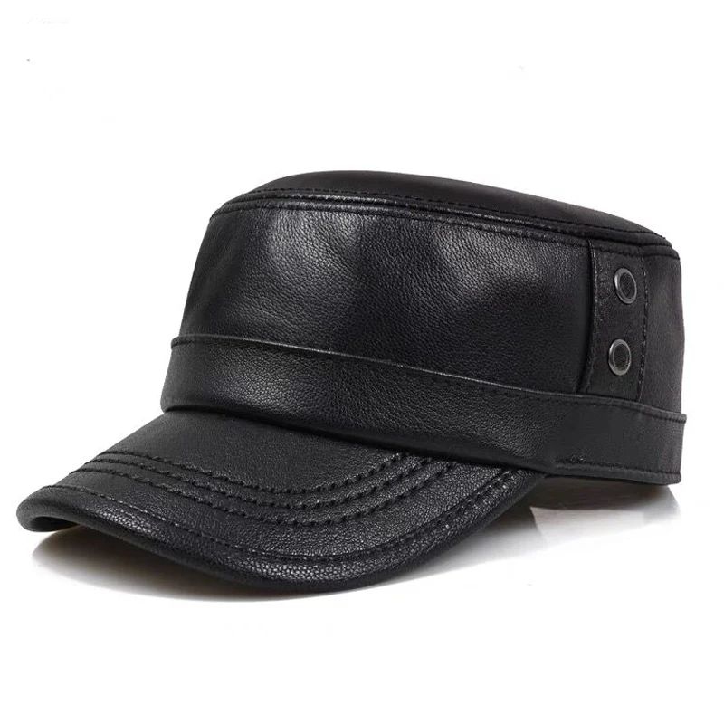 2025 New Men Spring/Winter Genuine Leather Black/Brown Flat Print Baseball Caps Male 55-60 cm Outdoor Snapback Golf Hat