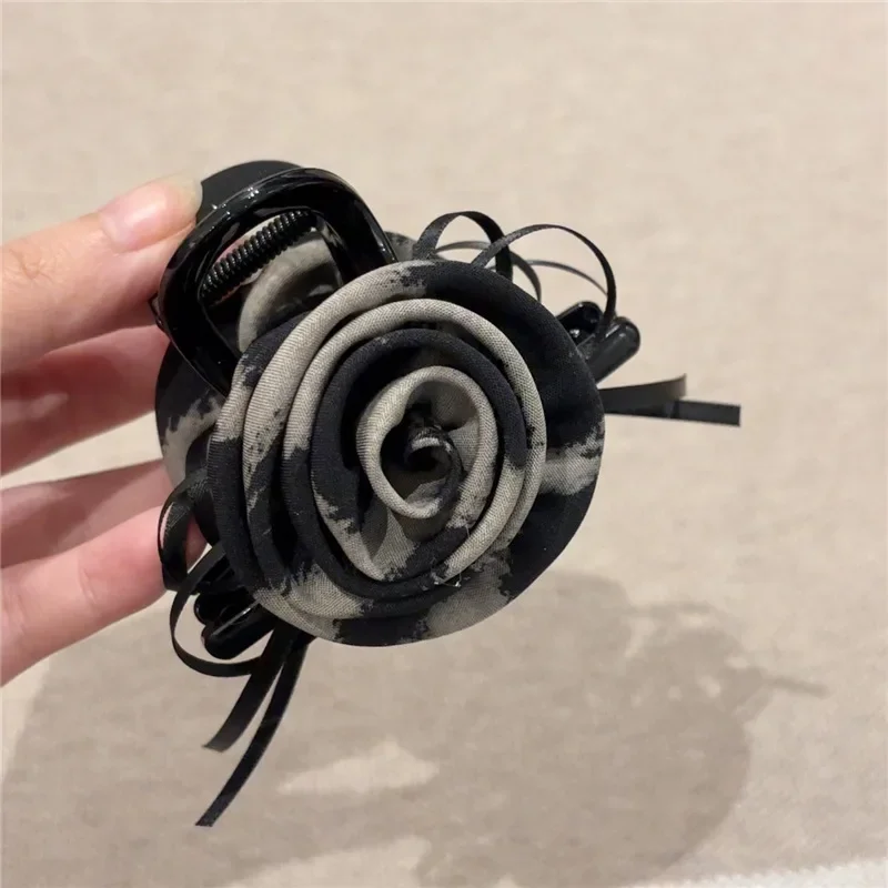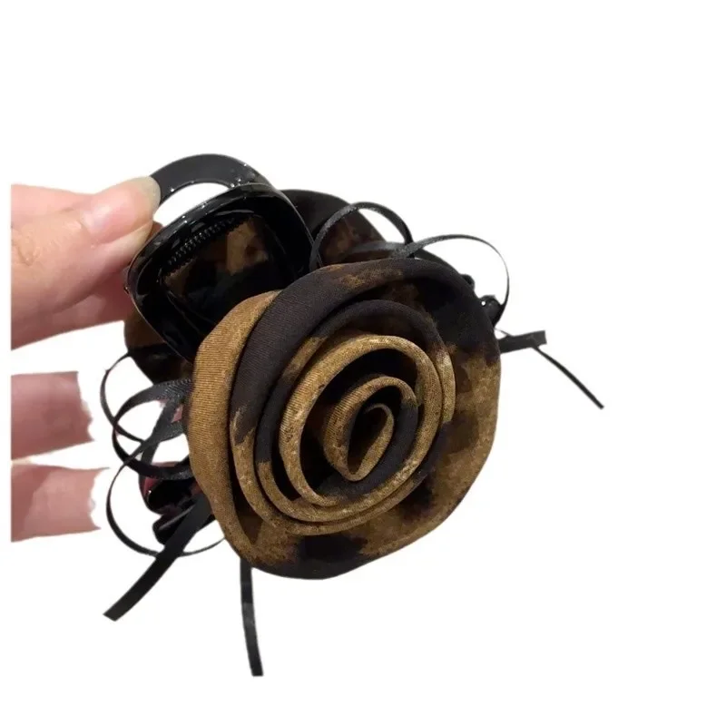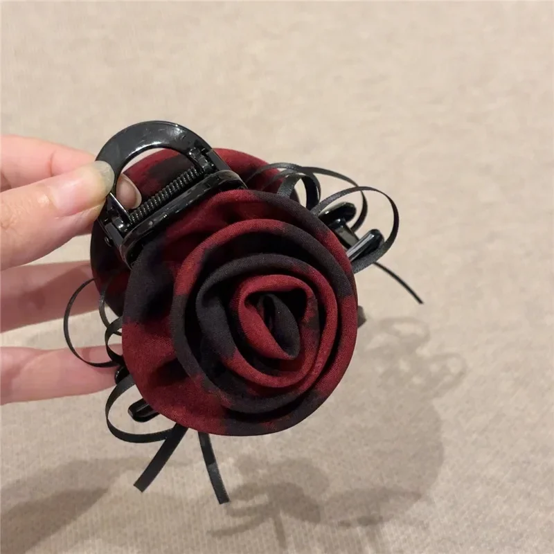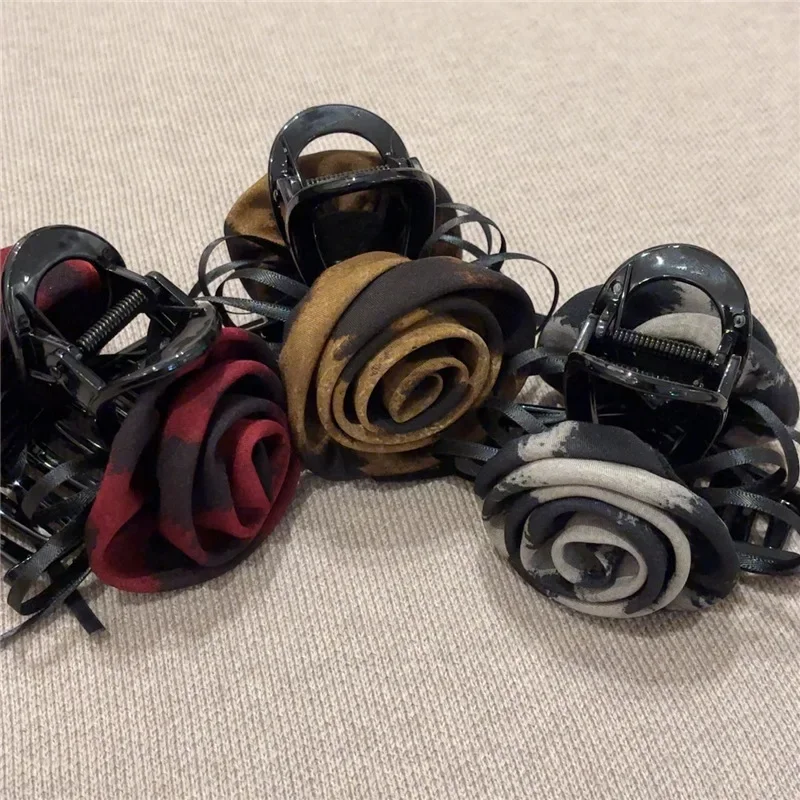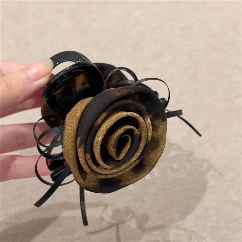 Korean Fabric Leopard Rose Flower Hair Clips Shark Clip Elegant Hair Claw Hairpin Crab Barrettes Hair Accessories for Women