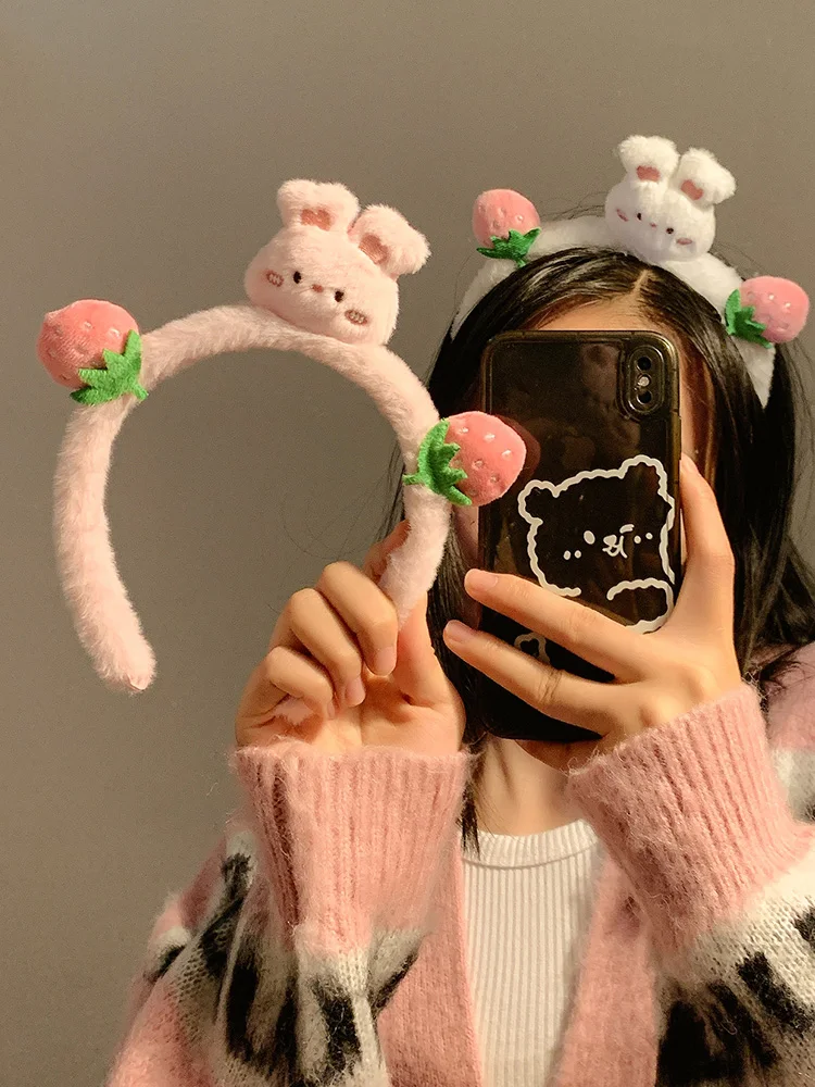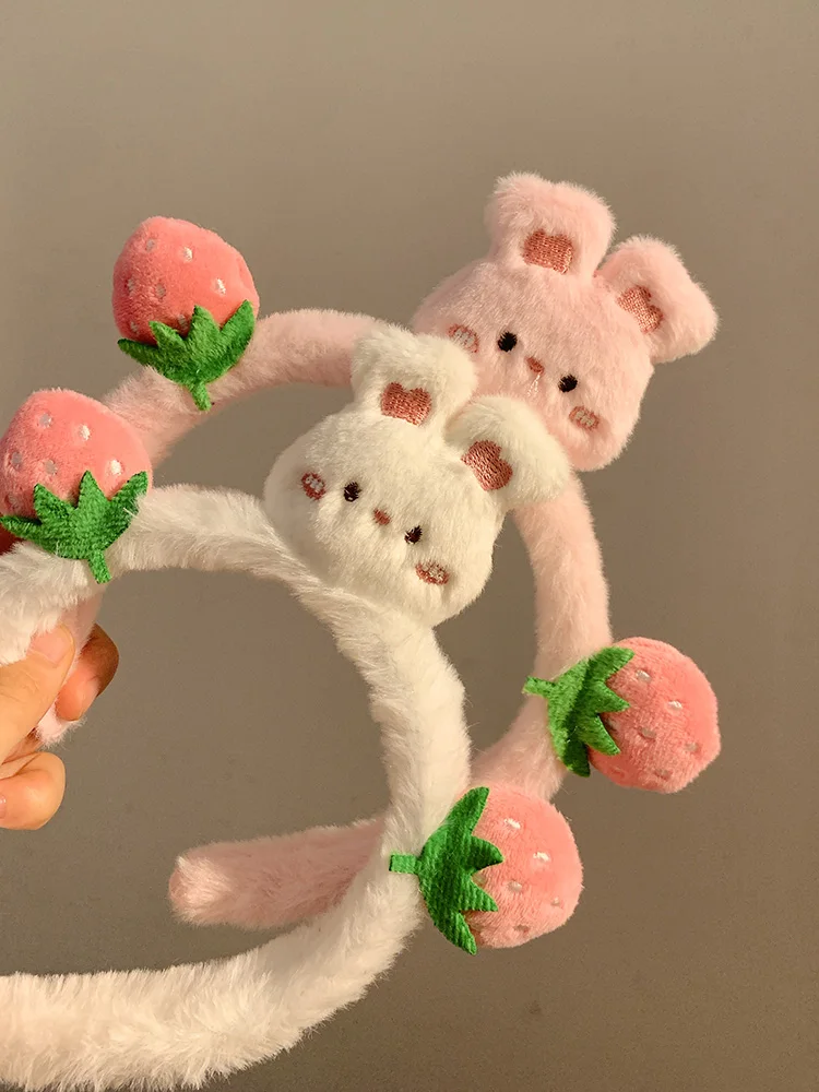 Plush Cartoon Headband Lovely Korean Style Hairbands Strawberry Bear Hair Hoop Hair Accessories Headpiece Cute Hair Hoop Daily