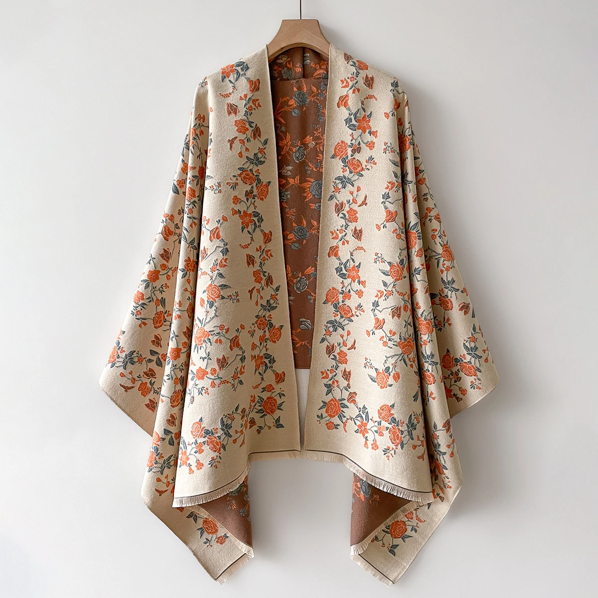 Women's Imitation Cashmere Warm Shawl Ethnic Style Cloak Fashionable Scarves Floral Print Coldproof and Windproof Scraf