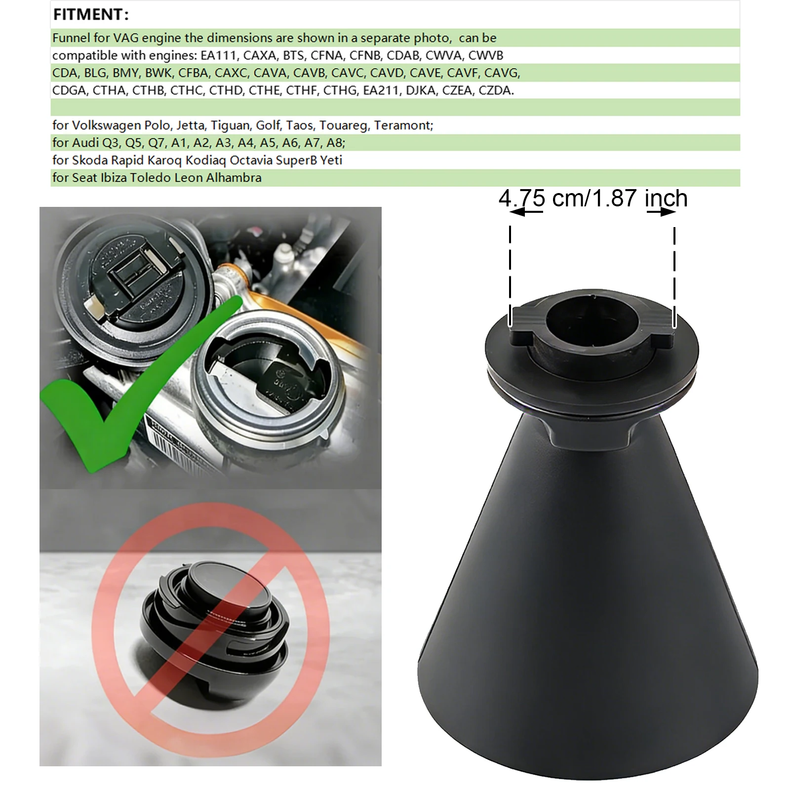 Spill-Proof Threaded Engine Oil Funnel Filler for VW Polo Jetta Tiguan Golf Touareg for Audi Skoda Rapid for Seat Ibiza Leon