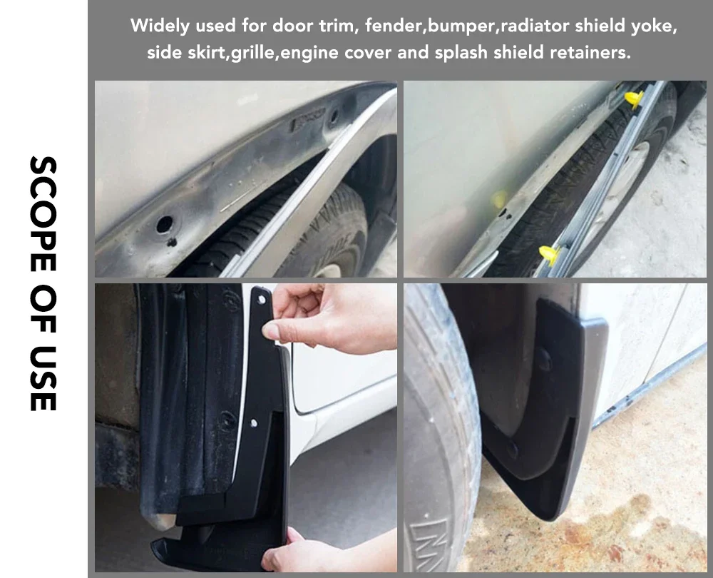 Universal fit for fenders, bumpers, doors; expands for secure hold.