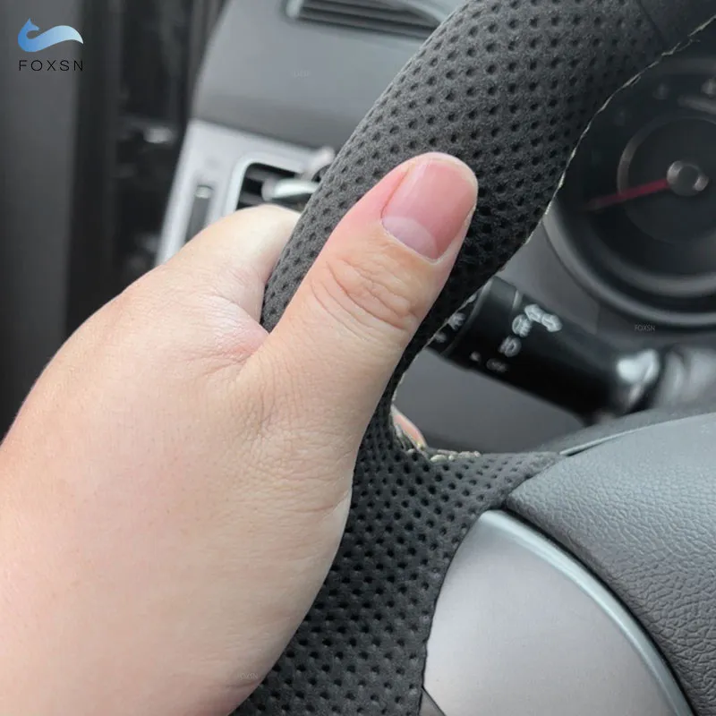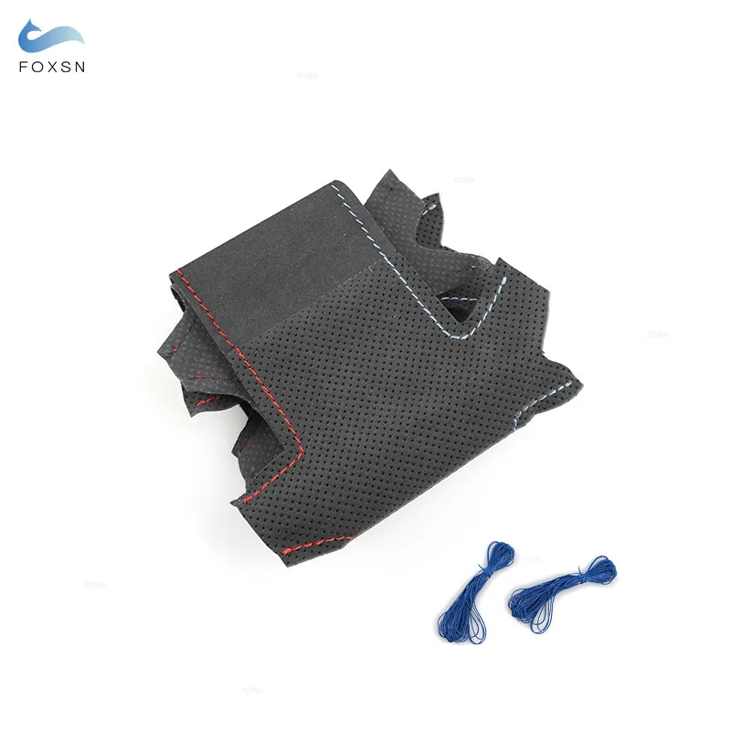 For BMW 3 5 Series E46 E39 X5 E53 2000 2001 2002 2003 Z3 E36 1.2mm Suede Leather Car Steering Wheel Cover Trim red blue line