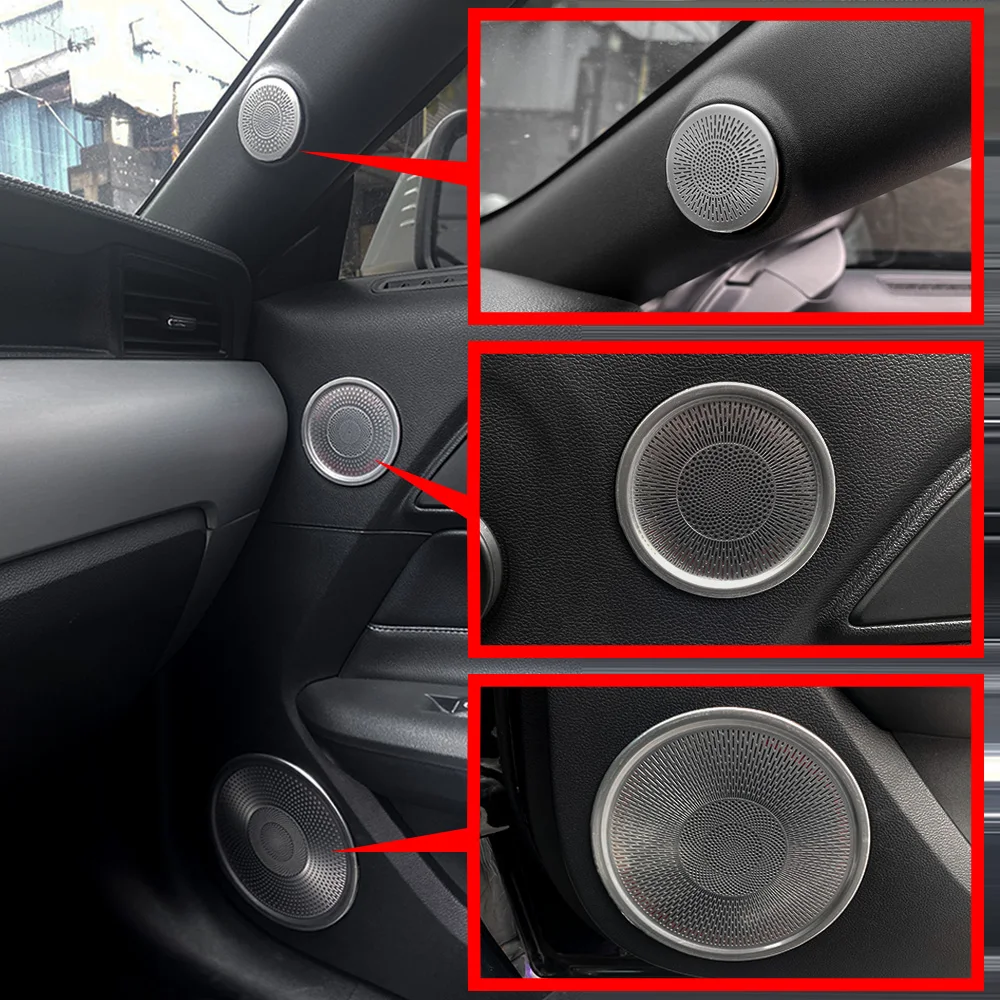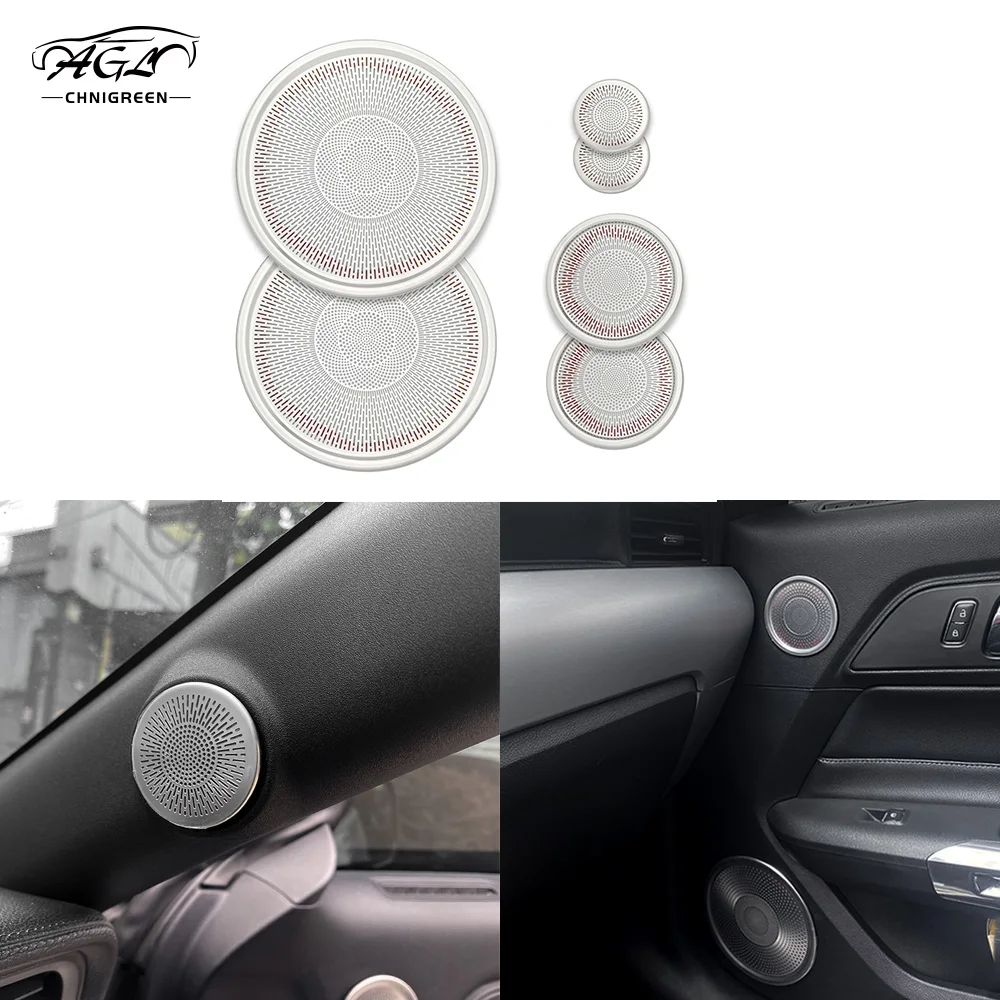 For Ford MUSTANG 2015-2020 6Pcs Stainless Steel Black Titanium Colour Car Interior Surround Horn Sound Speaker Cover Plate