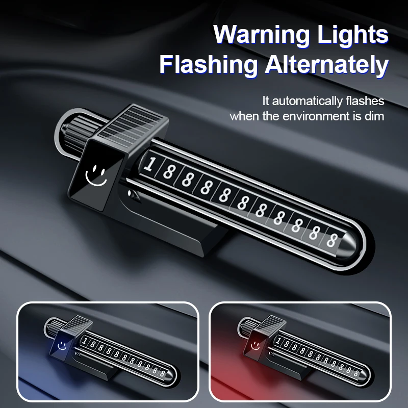 Solar Energy Magnetic Car Phone Card Temporary Parking Night Visibility Light Emergency Contact Info Display Dashboard Accessory