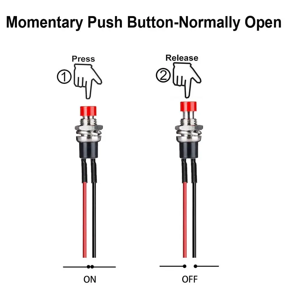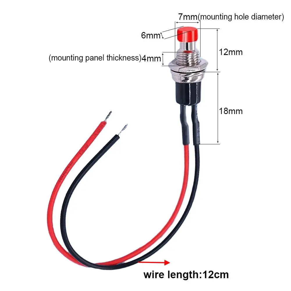 12pcs 7mm 3V-6V-12V-24V-230V/1A Prewired Mini Momentary Push Button,SPST Nomal Open ON/Off 2 Pin Round Button for Model Railway