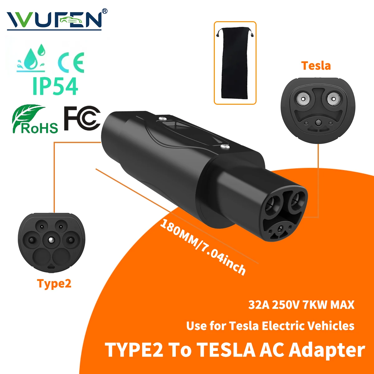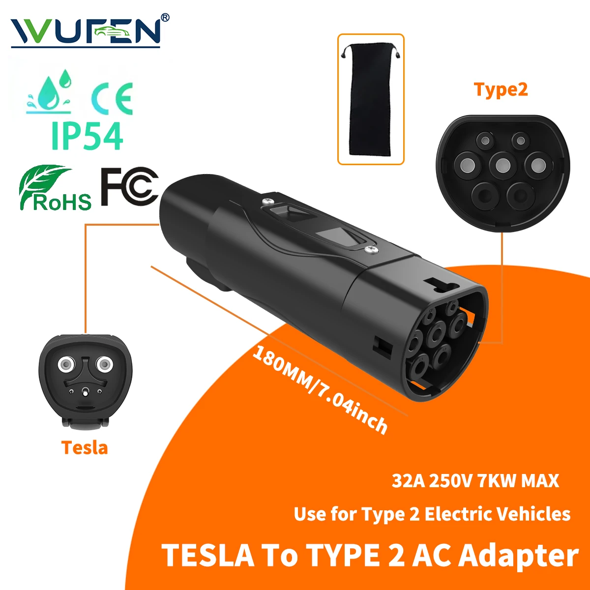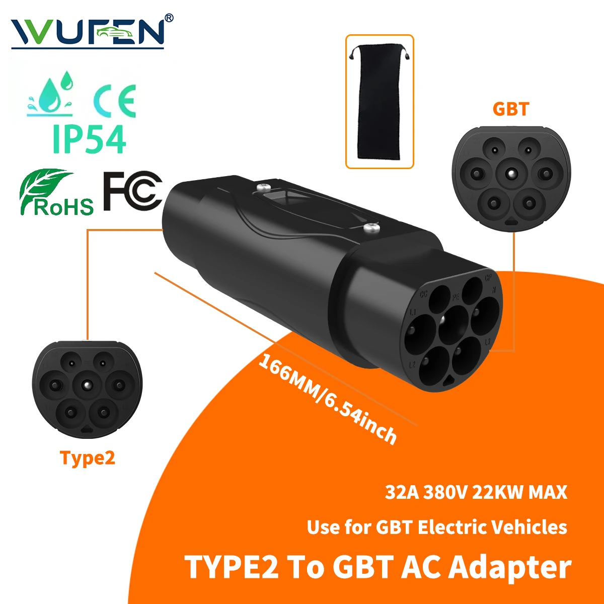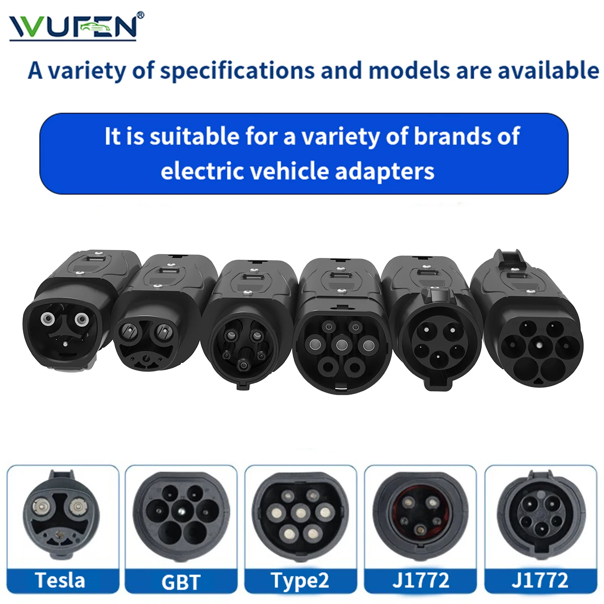 WUFEN Global 32A Electric Vehicle Adapter Type1 to Type2 Charger AC Type2 to GB/T Convertor GBT to Type2/Type1 For Electric Cars