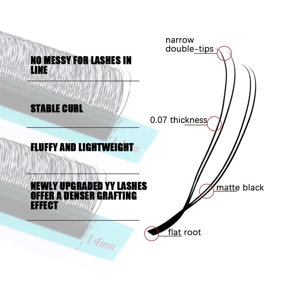 FADVAN U Shape YY 3D 4D 5D Eyelashes 10PCS Bundle Matte Black Natural Softlight Lashes Narrow Shaped Fans 12lines Lash Supplier