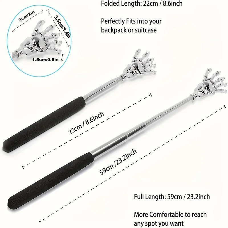 Stainless Steel Adjustable Massage and Tickle Relief Back Portable Rubber Handle Extendable Telescoping Itch Stick Health Care
