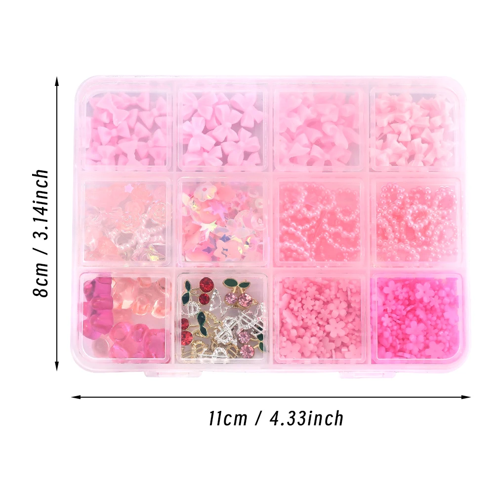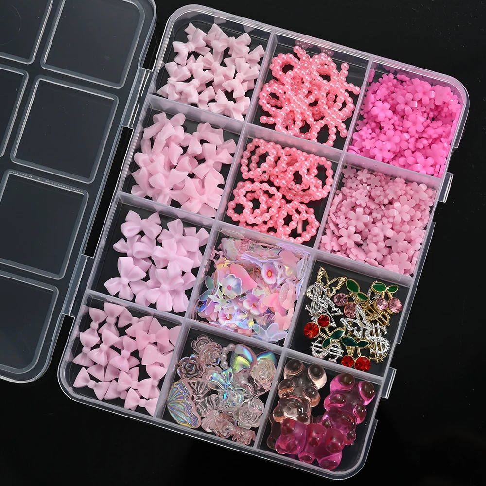 12Grids 3D Bow Nail Art Charms Kit Multicolor Bowknots Flowers Bear Charm Trendy Nail Supplies for Salon DIY Manicure Accessorie
