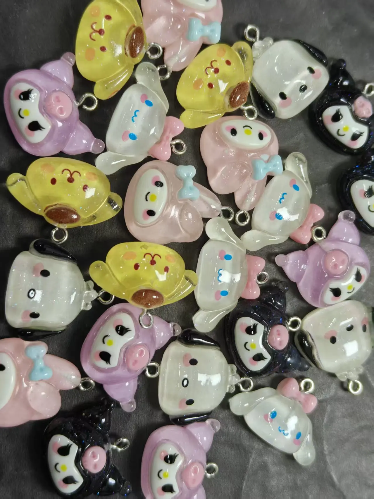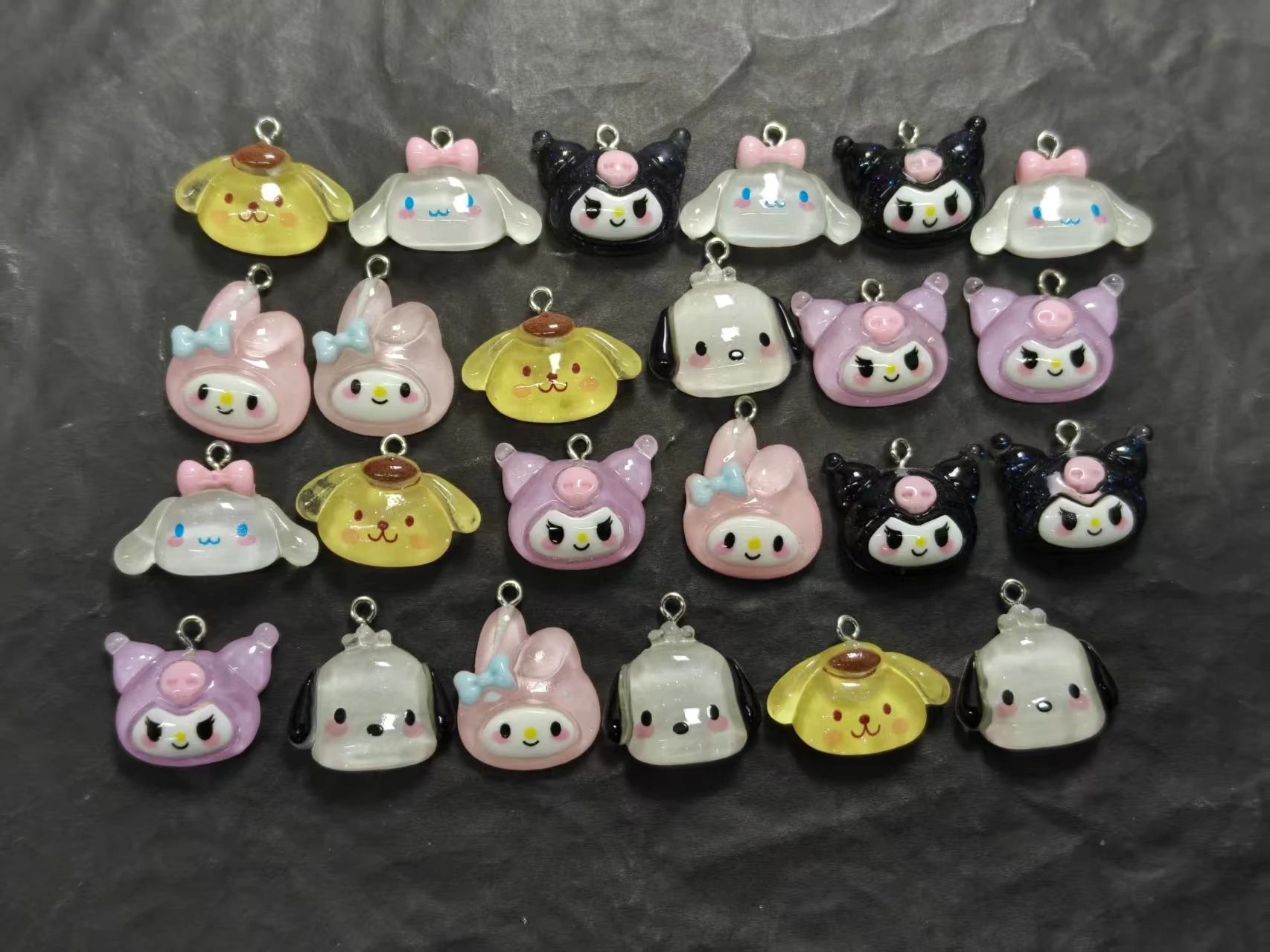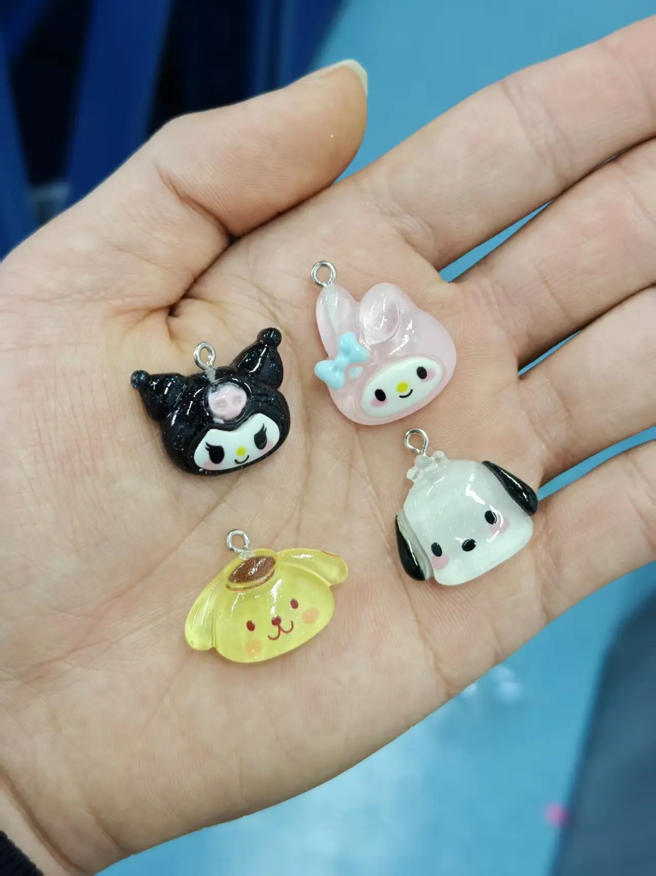24pcs Sanrio Cartoon Animal Resin Charms - Cute Kuromi Jewelry Making Bulk Pendant DIY Ornament for Bracelets