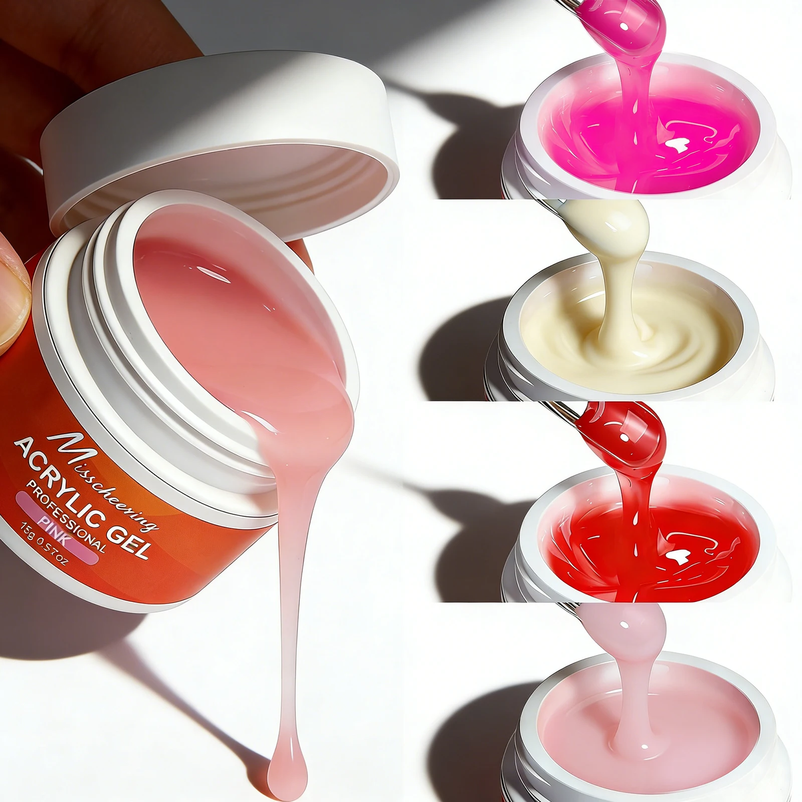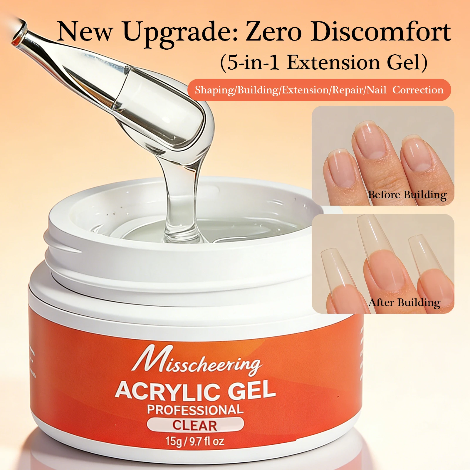 Misscheering15g 5-in-1 Acrylic Gel UV LED Nail Extension Gel Shaping Building Repair Clear/Rose Pink/White Long-Lasting 28+ Days