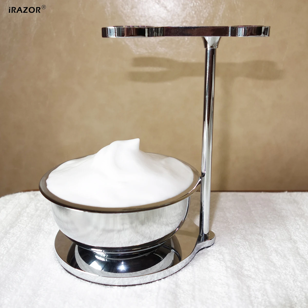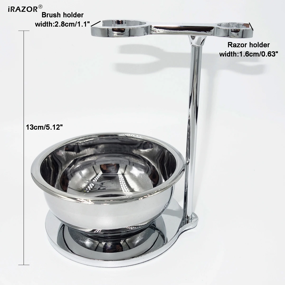 iRAZOR Deluxe Safety Razor And Shaving Brush Stand with Stainless Steel Bowl - Metal Holder for Extended Brush and Razor Life
