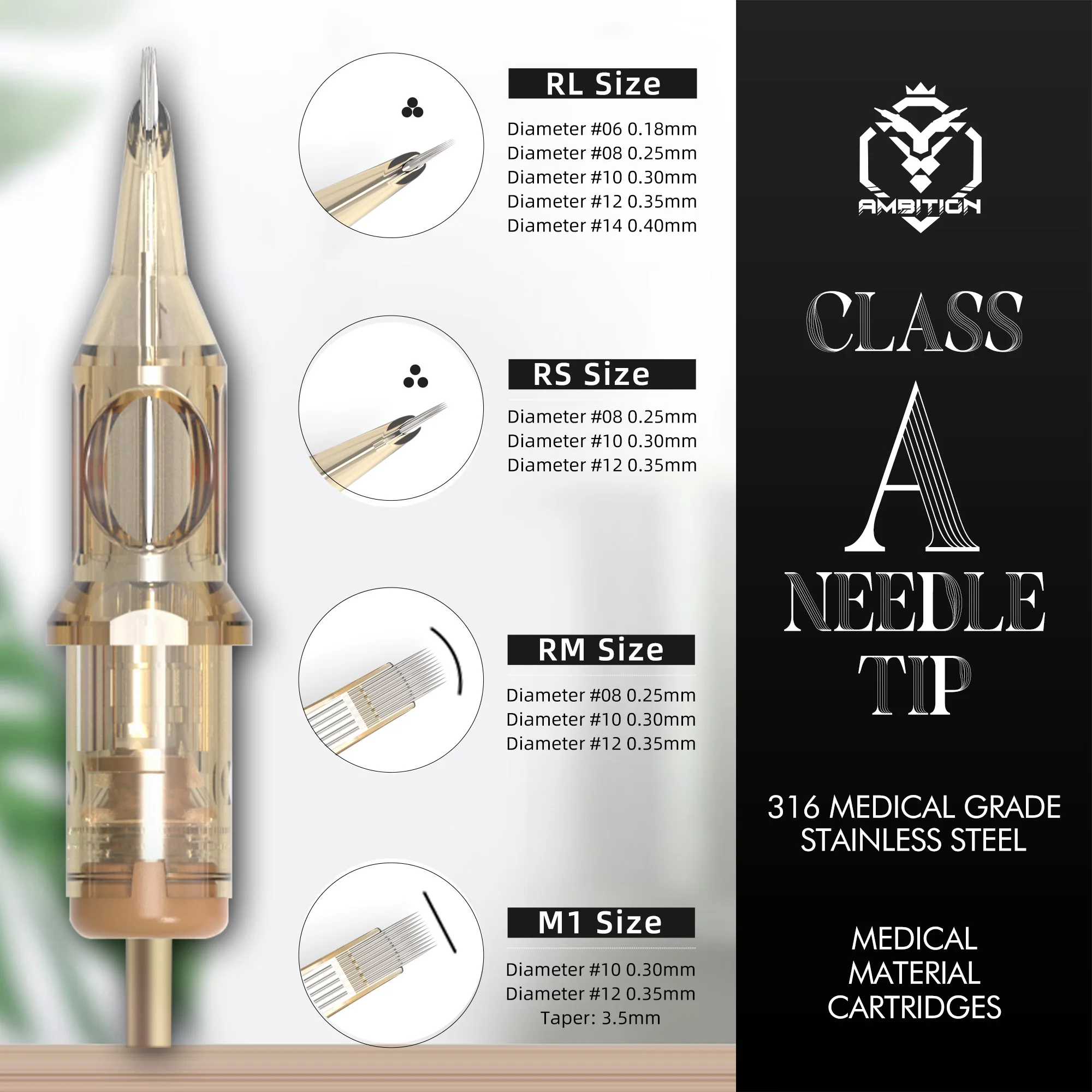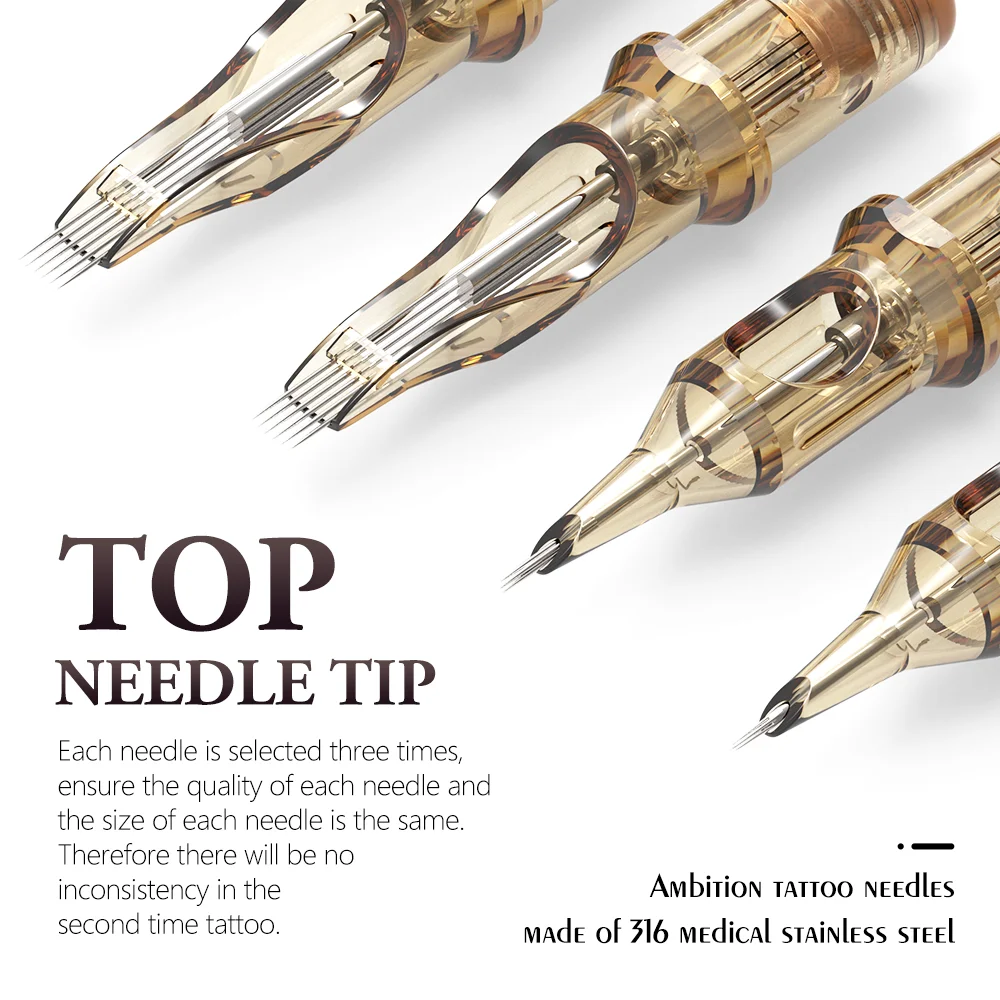 Ambition Premium 10PCS Tattoo Cartridge Mix Round Liner 0.3/0.35mm RL/RM Disposable Tattoo Needle 1rl 3rl 5rl 7rm 9rm 13rm 15rm