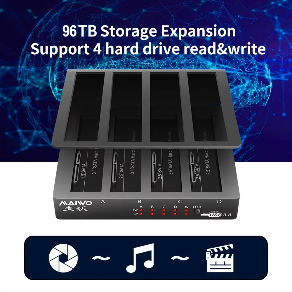 MAIWO 4 Bay Hard Drive Docking Station for 2.5/3.5 Inch HDD SSD SATA To USB 3.0 HDD Docking Station with 12V3A Power Adapter
