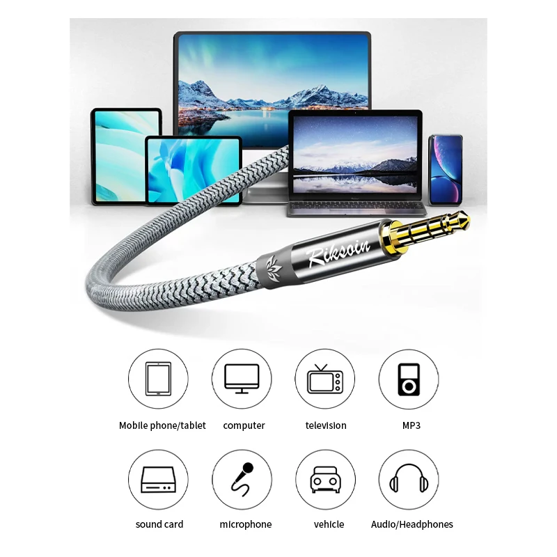 3.5 mm Audio Auxiliary Cable, TRRS High Fidelity Magnetic Ring Anti-interference for Smartphone,Car Home Stereo, Headphones