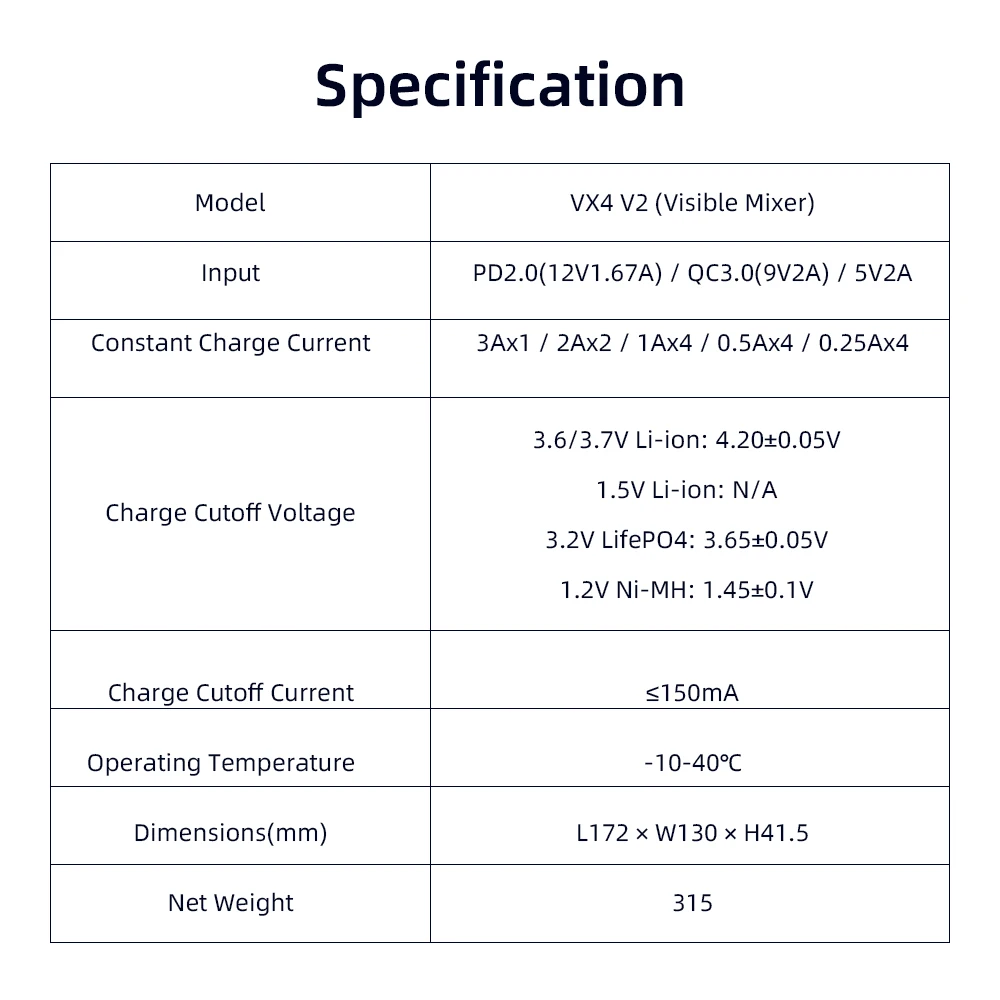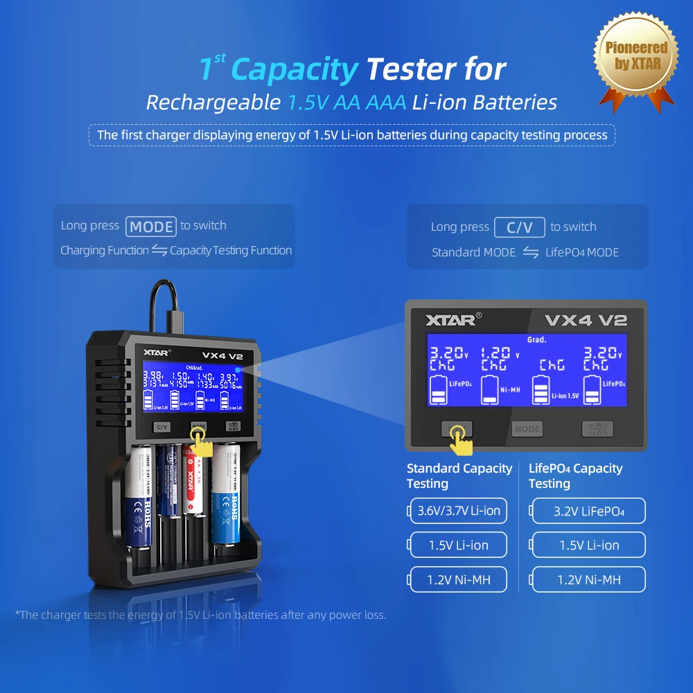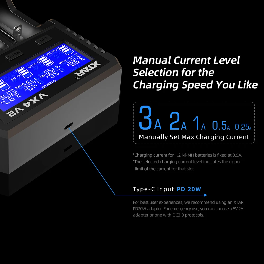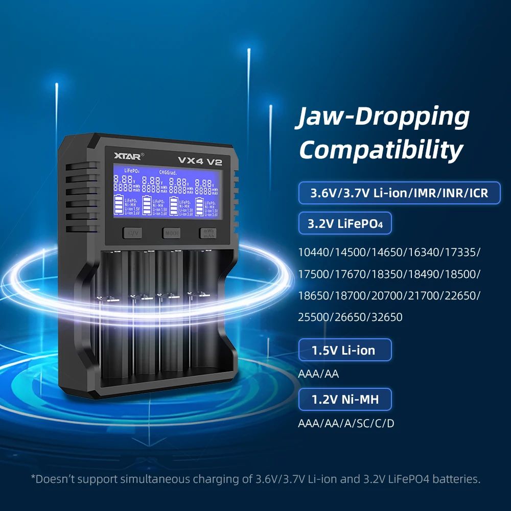 XTAR VX4 V2 18650 charger AAA/AA 1.5V Li-ion /Ni-MH/LiFePO4 Battery PD20W fast charger with LED display Battery capacity tester