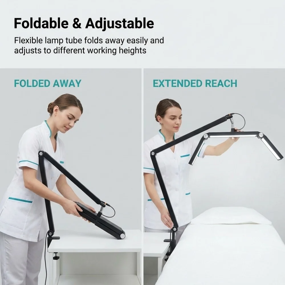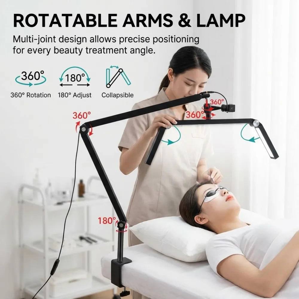 26inch Professional Eyelash Lamp 36W Foldable Half Moon Light Desktop Clamp Remote for Manicure Lash Eyebrow Tattoo Salon Use