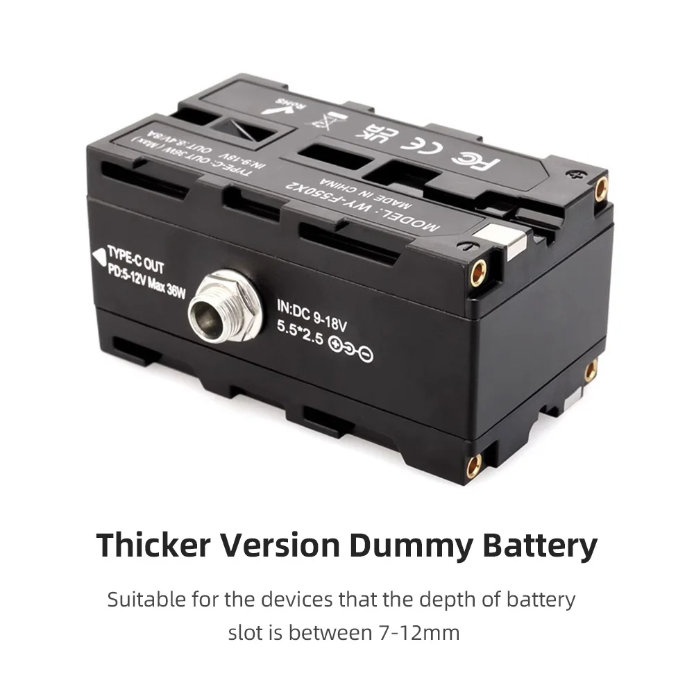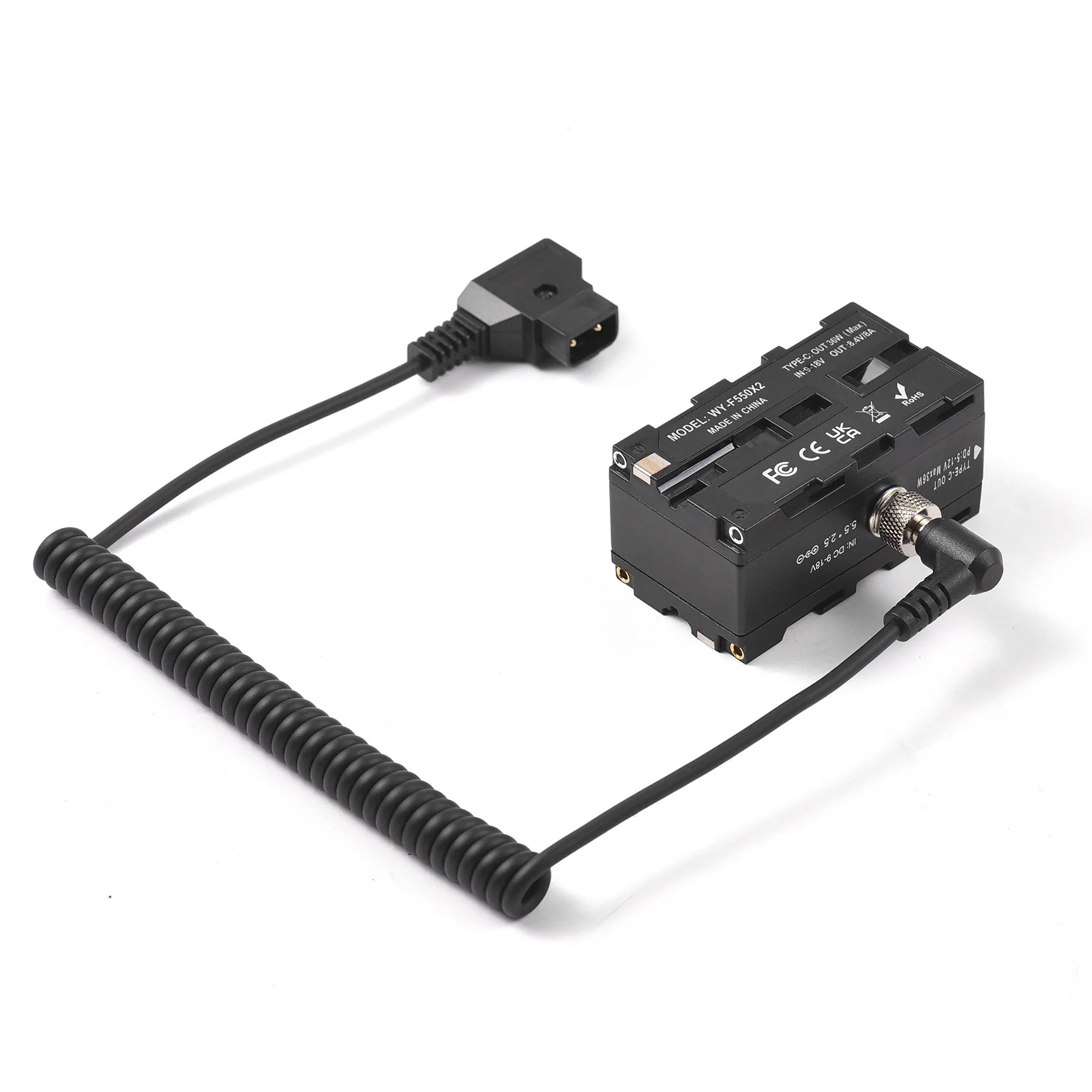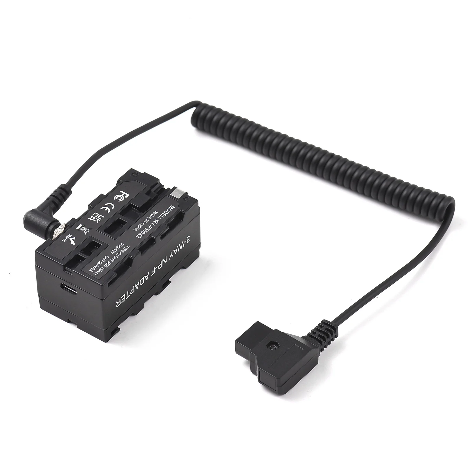 D-Tap/ Type-C to Double-Sided NP-F550/570/770/970 Dummy Battery Power Adapter with 5-12V Type-C Output Flexible Spring Cable