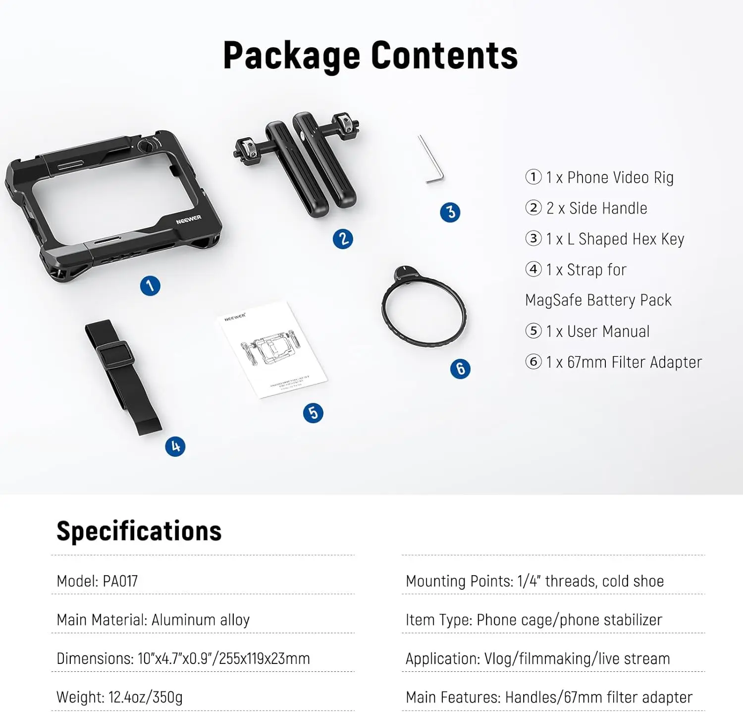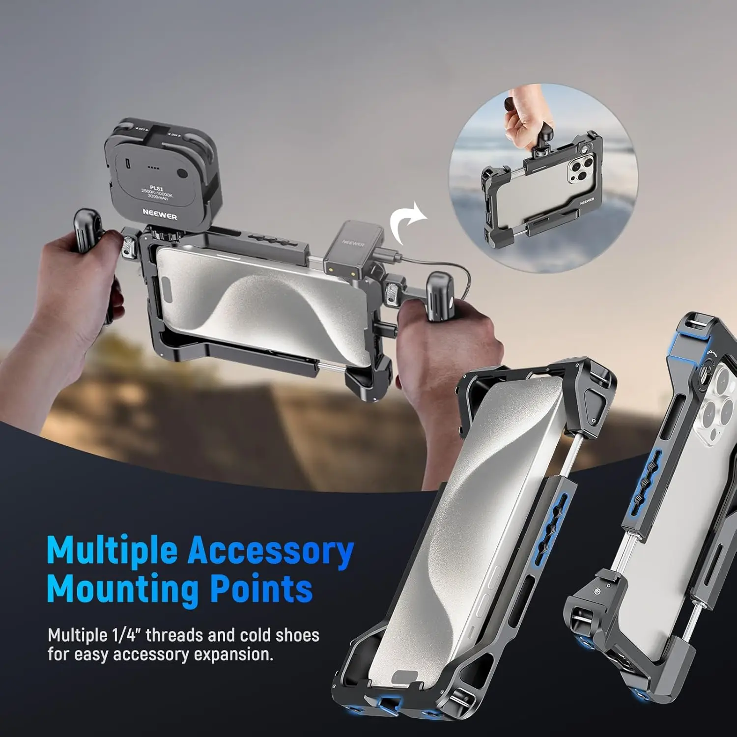 NEEWER Universal Smartphone Video Rig with Handles 67mm Filter Adapter For DJI Mic iPhone 14 15 Pro Max Samsung Galaxy Android