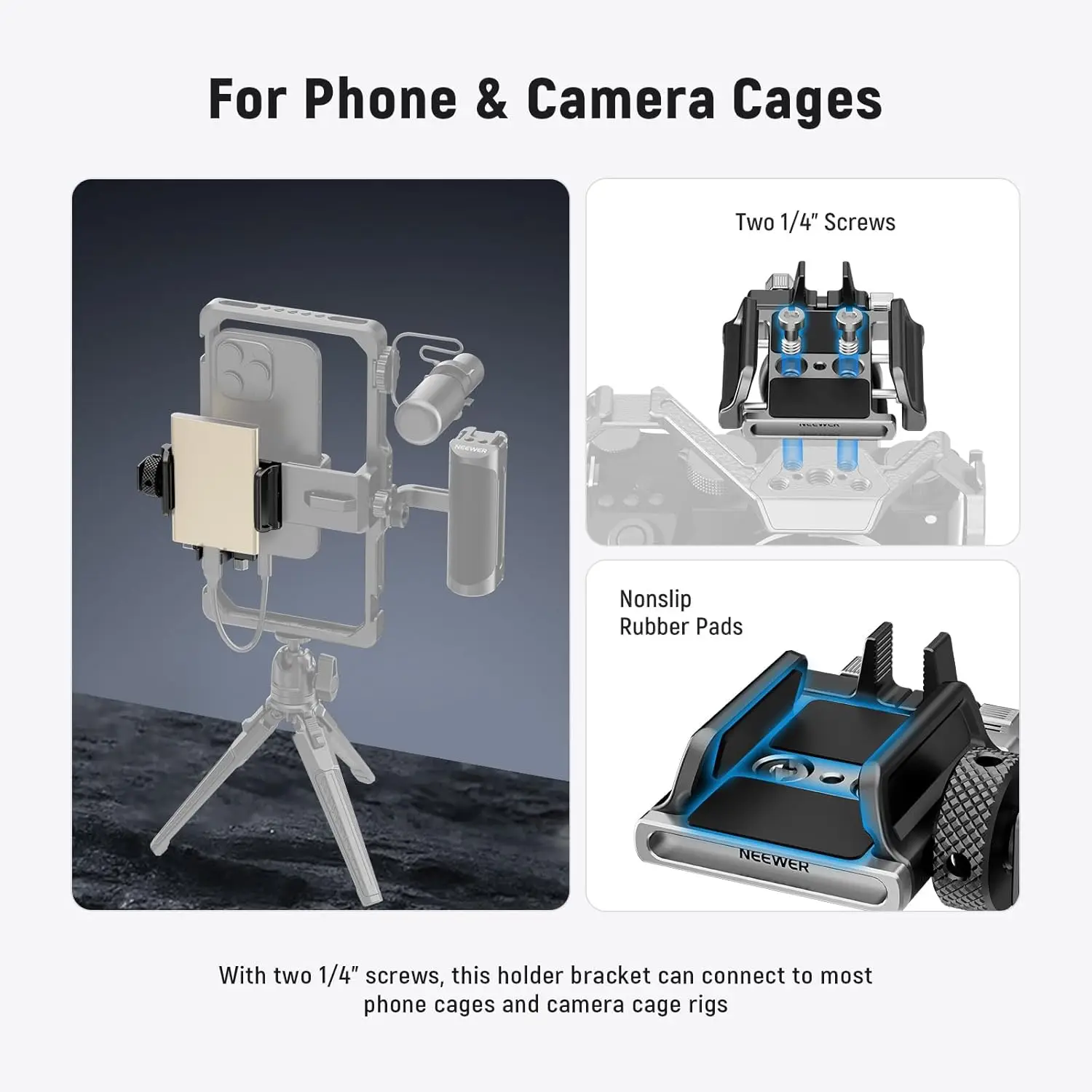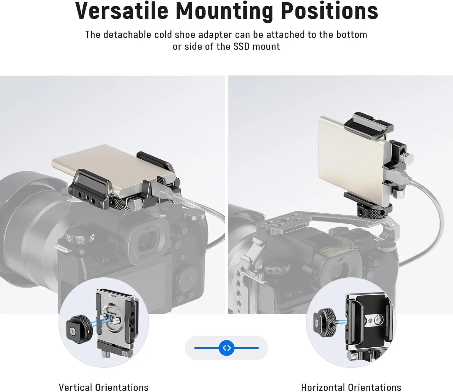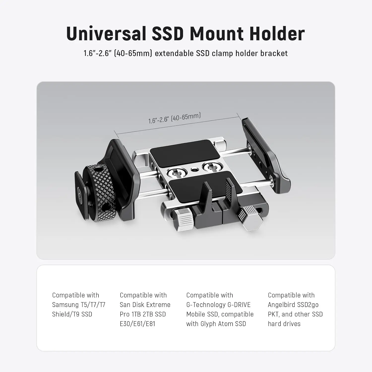 NEEWER Universal SSD Holder Mount Bracket with Cold Shoe/Cable Clamp for T5 T7 T9 SSD also Compatible with SmallRig Cage