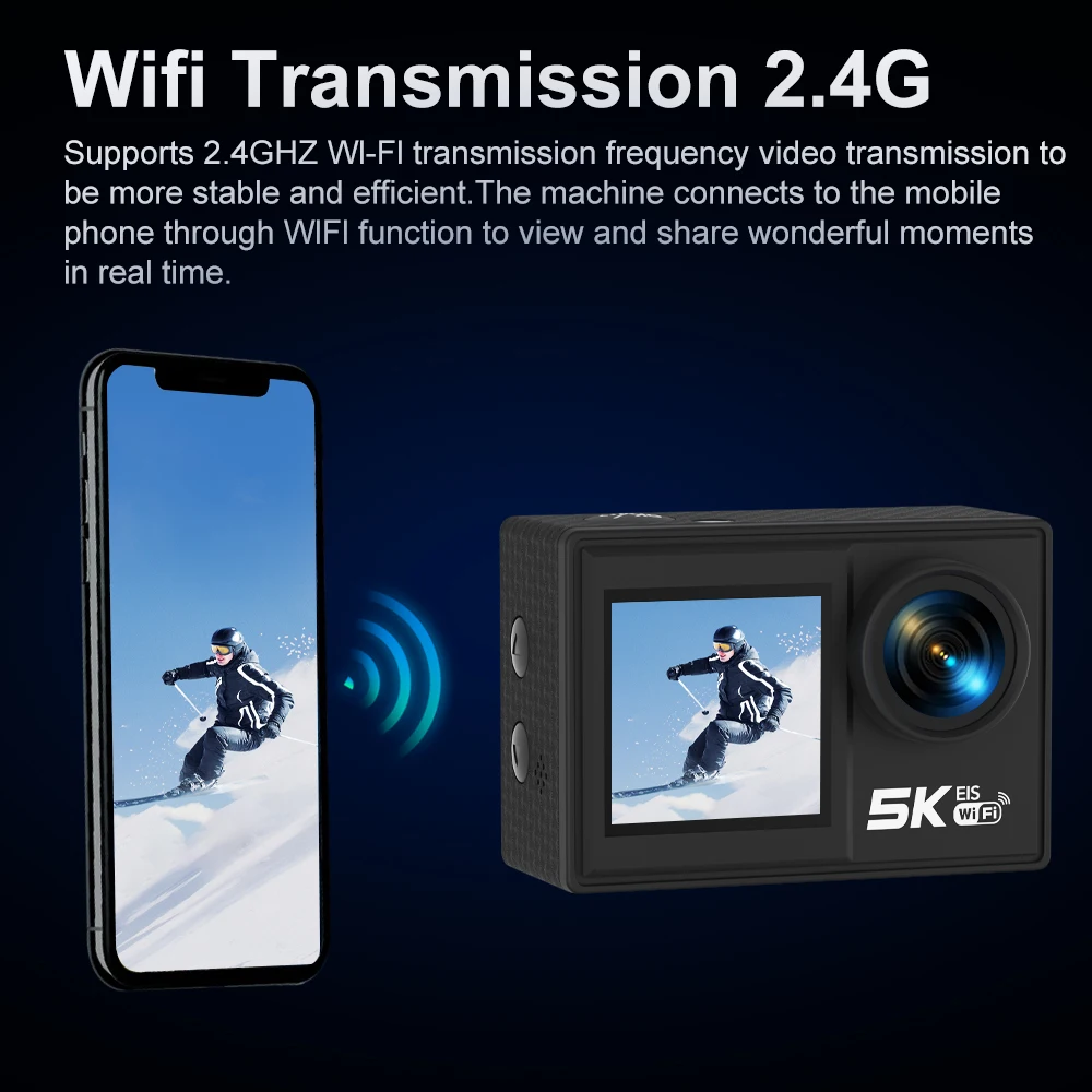 Ourlife MTR41 Action Camera 5K 4K60FPS 5X Zoom 170° 30M Waterproof 2.0'' IPS Touch LCD EIS WiFi Sport Camera With Remote Control