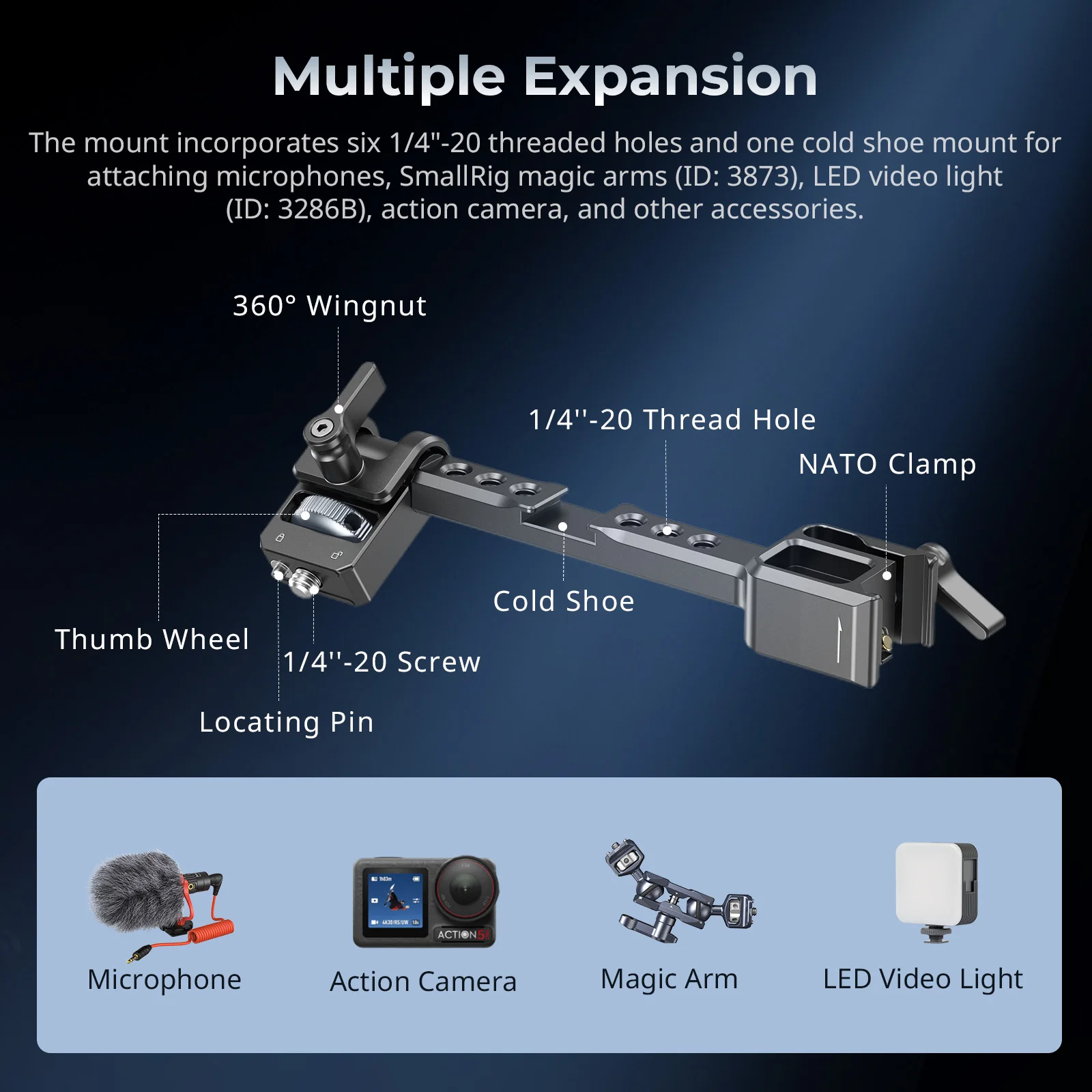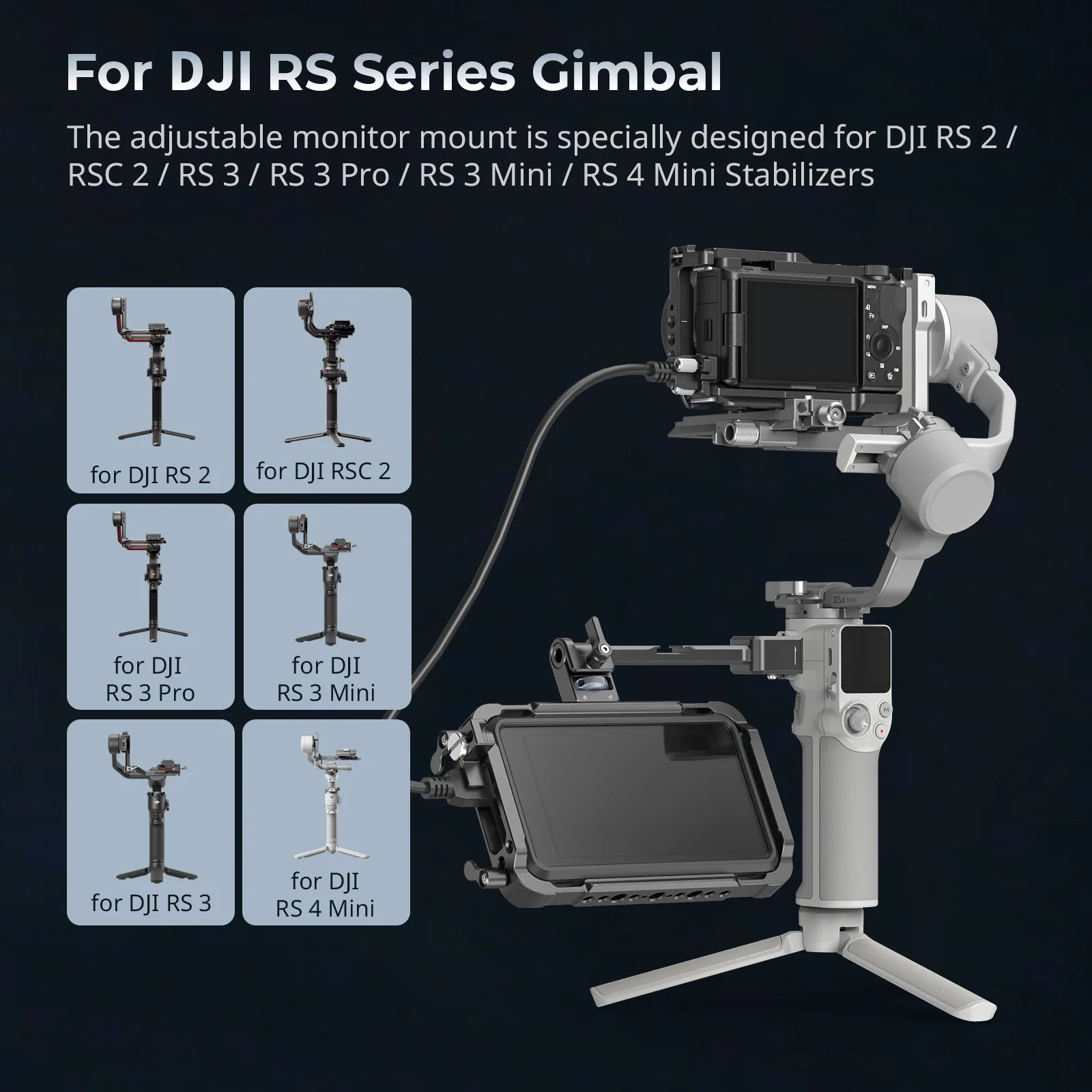 SmallRig Adjustable Camera Monitor Mount for DJI RS 3/RS 3 Pro/RS 3 Mini/RS 4 Mini Stabilizers w Quick Release NATO Clamp -5337