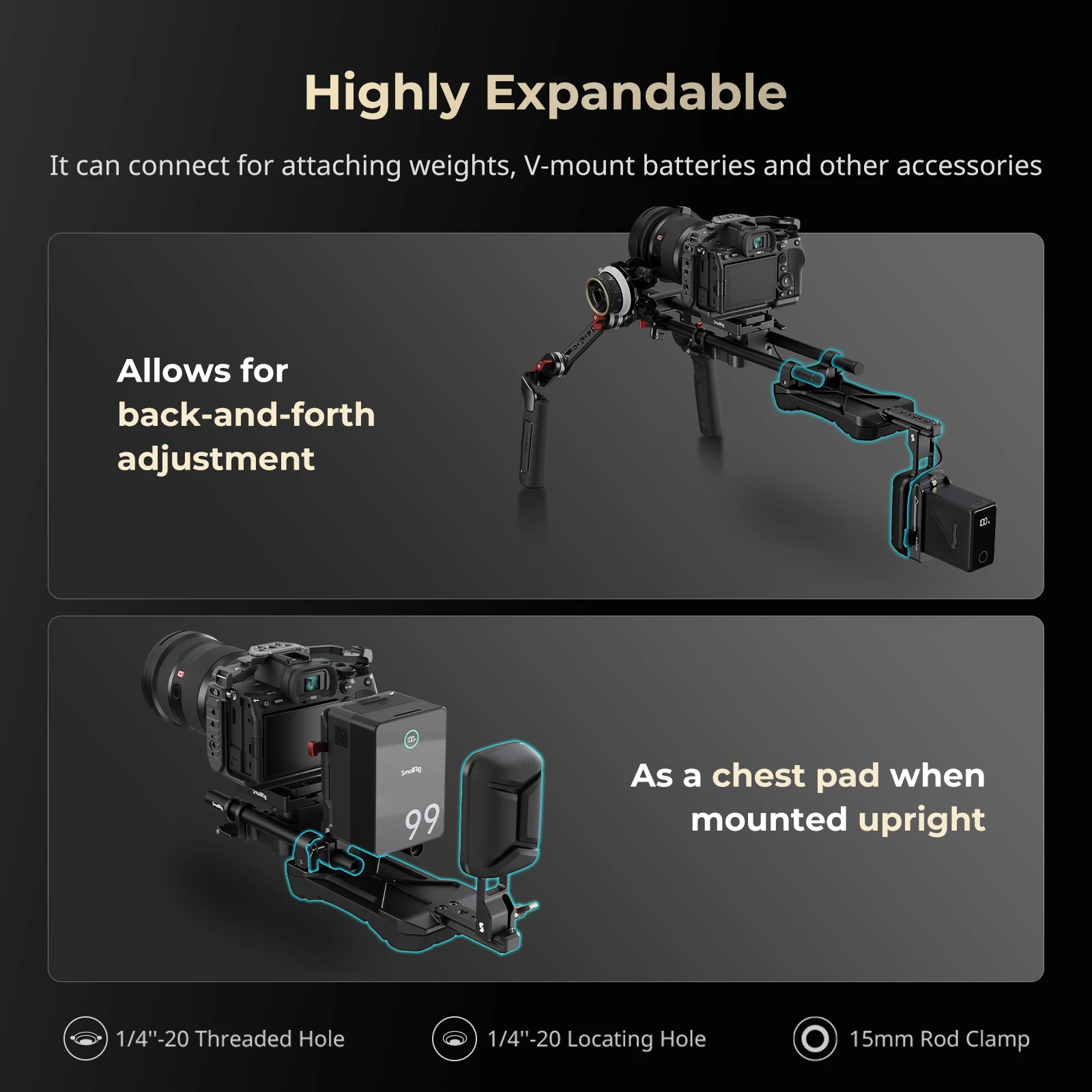 SmallRig Universal Shoulder Pad with 15mm Dual Rod Clamp, w Shoulder/Back Pad for Reduced Strain for Sony for DSLR Camera -5153