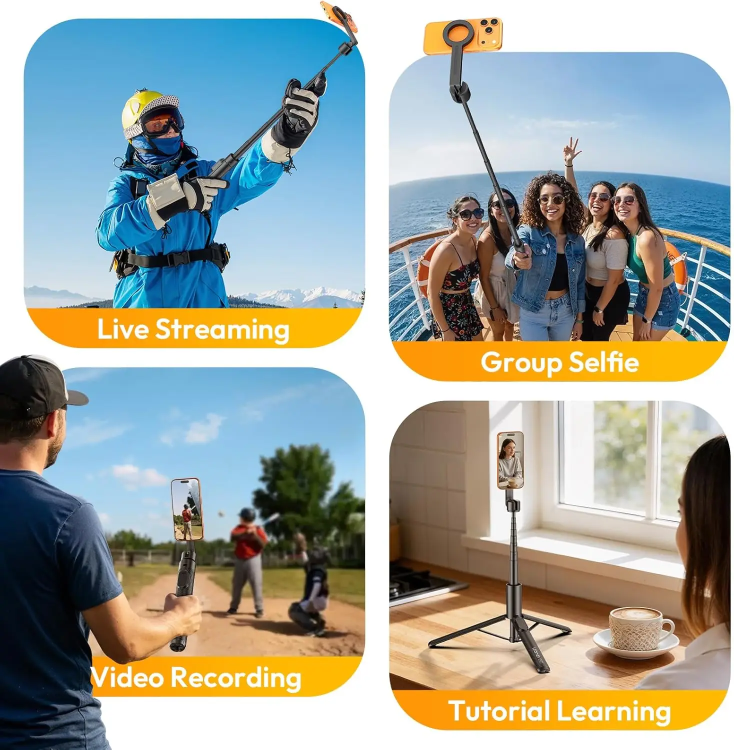 Ulanzi SK26 Magnetic Phone Tripod 113cm Selfie Stick for Magsafe Remote, Portable Tripod for iPhone 17 Pro Extendable Cell Phone