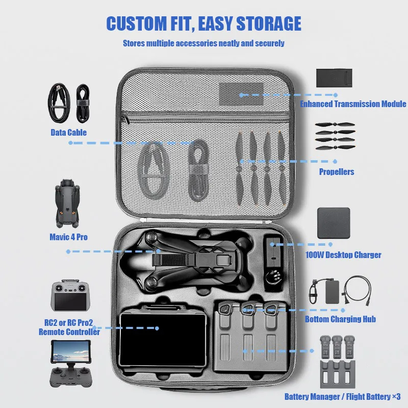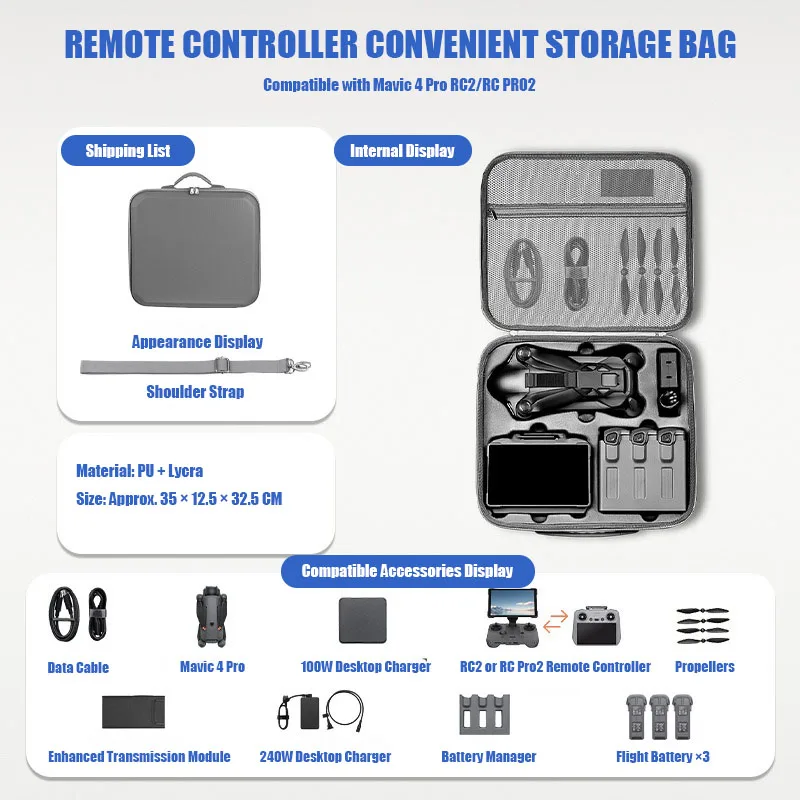 VOLODYMYR Carrying Case Travel Shoulder Bag for DJI Mavic 4 PRO RC PRO 2 Fly More Combo Accessory Storage Box PU Handbag