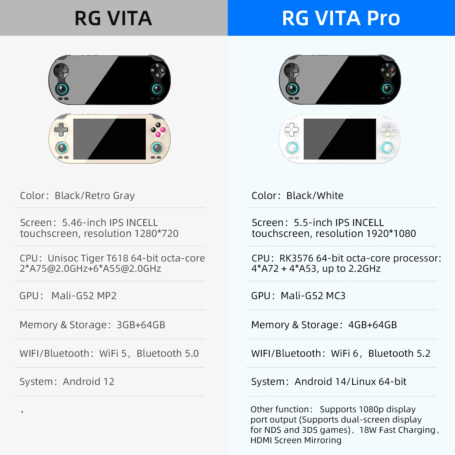 ANBERNIC RG VITA / RG VITA Pro Handheld Game Console IPS Touchscreen 5000mAh Video Gaming Player Supports AI Streaming RixelHK