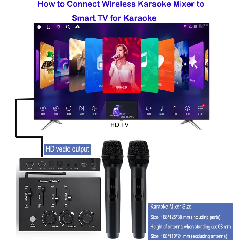 New Arrival OEM BT HD Karaoke Mixer Home Theater Uhf Wireless Microphone Receiver System for Smart TV PC Amplifier Speaker
