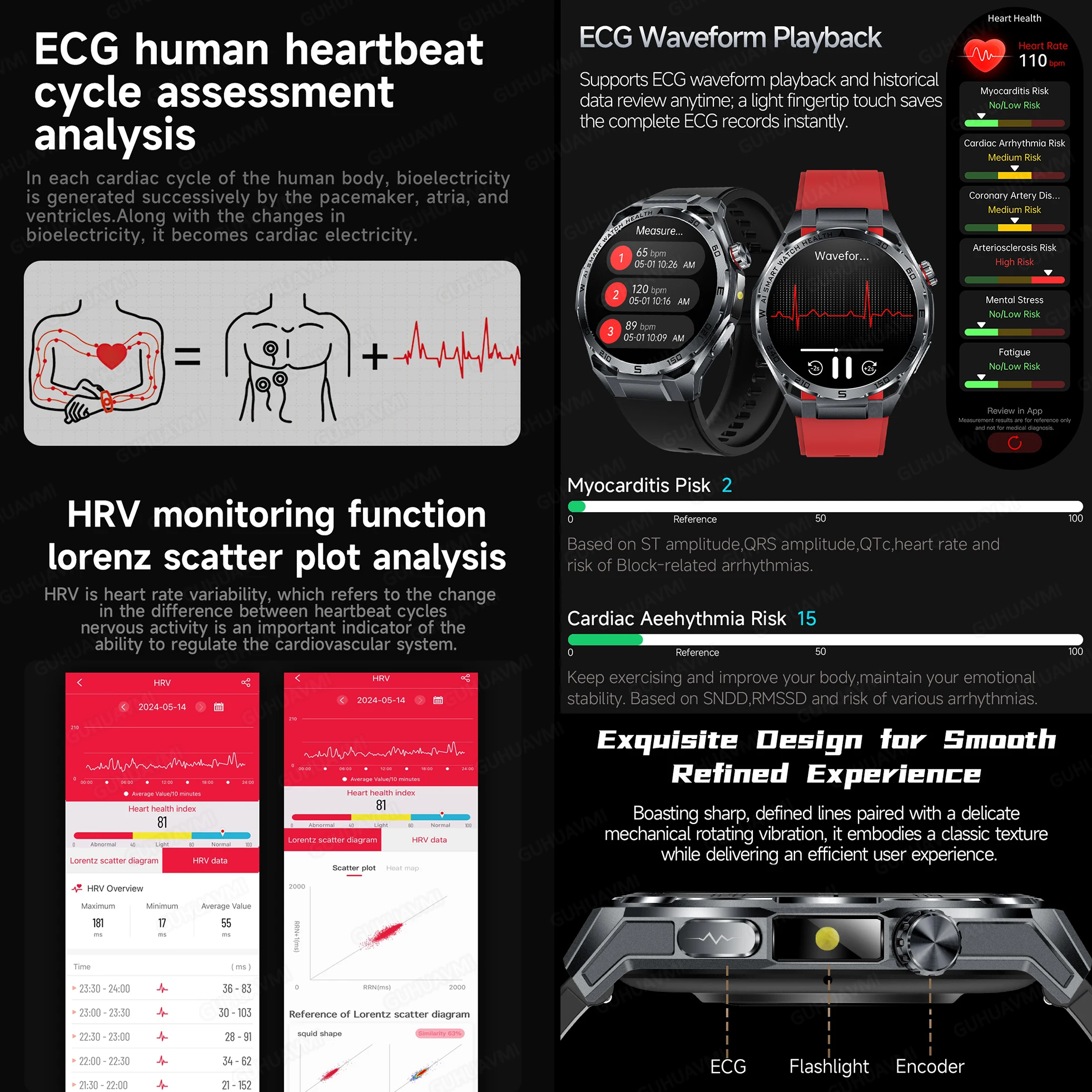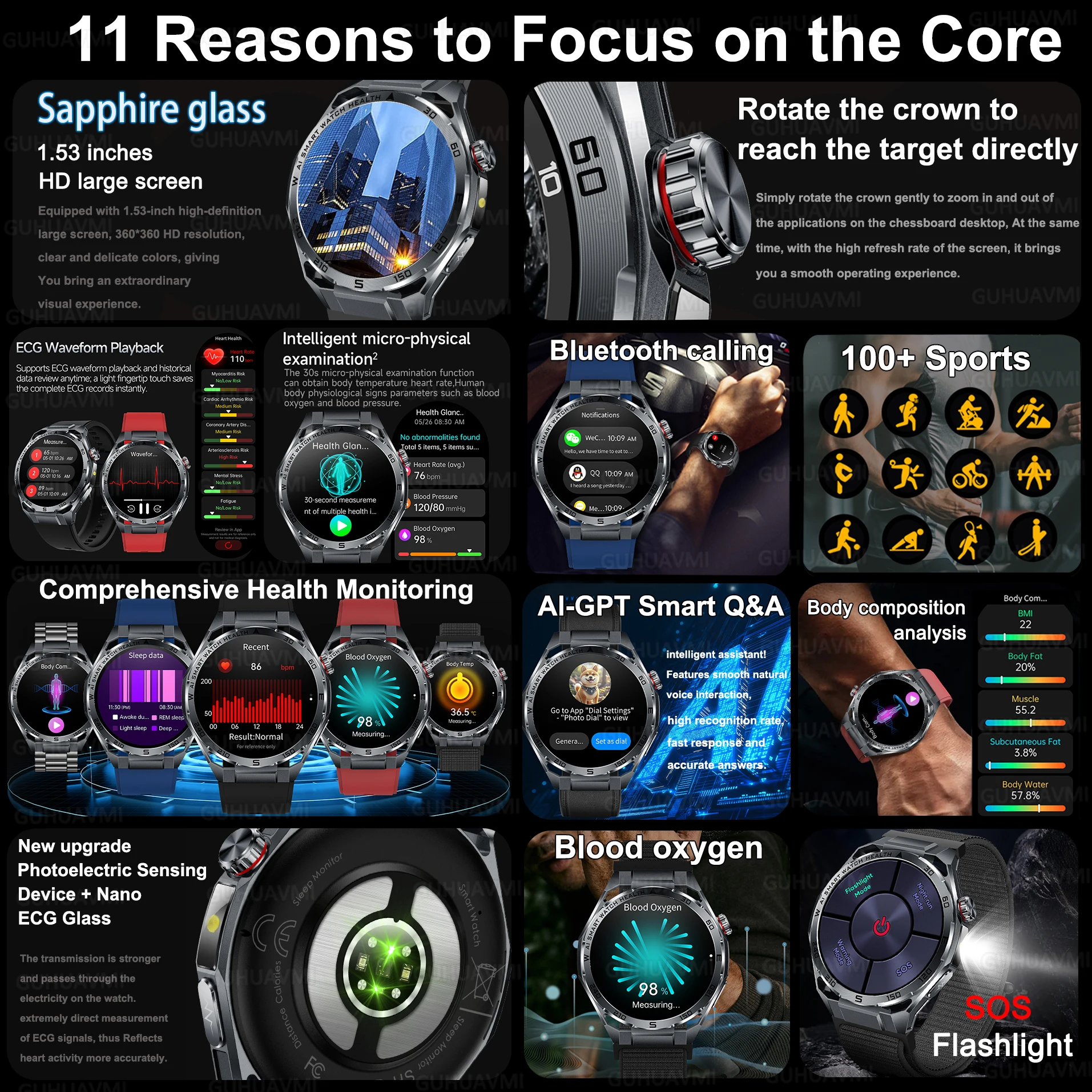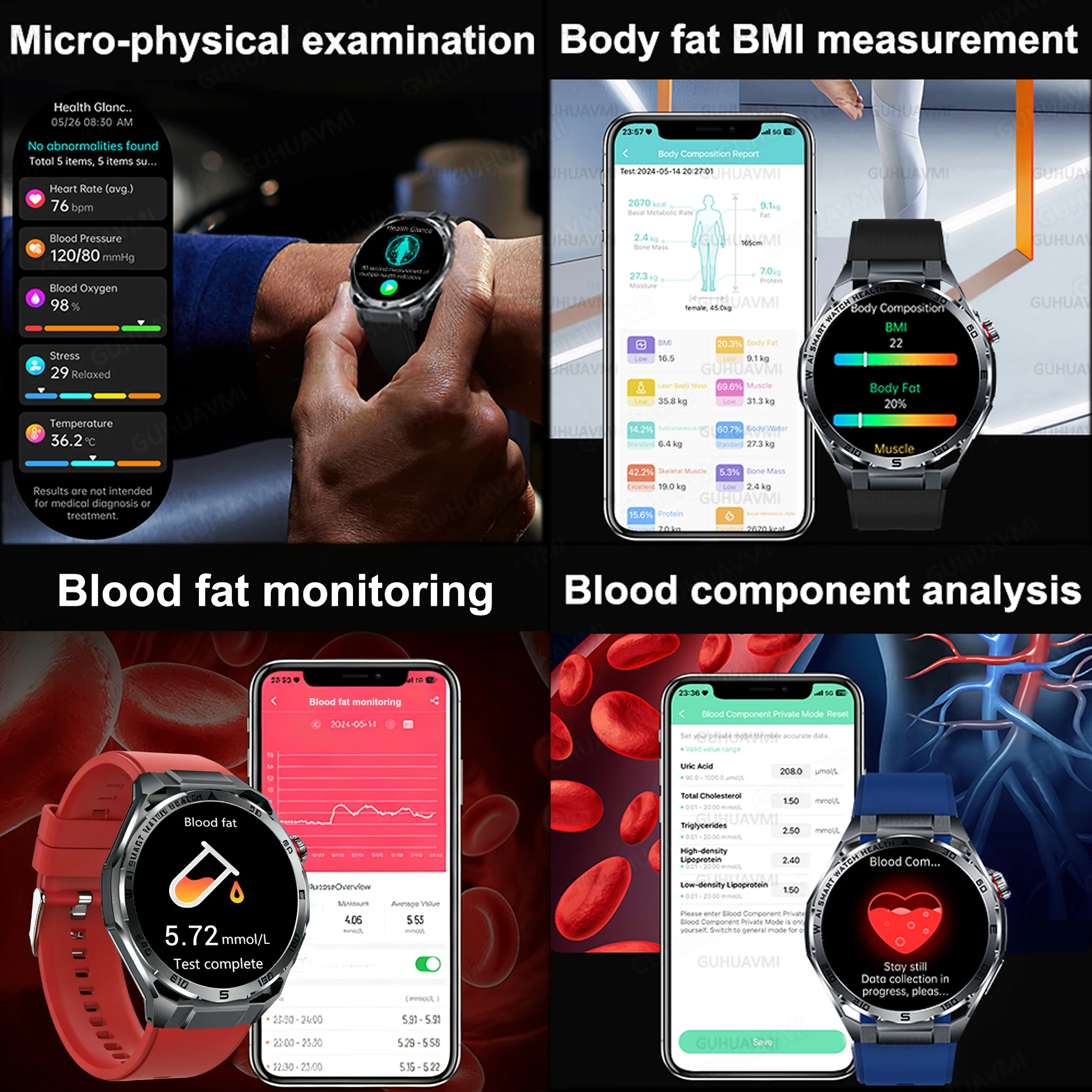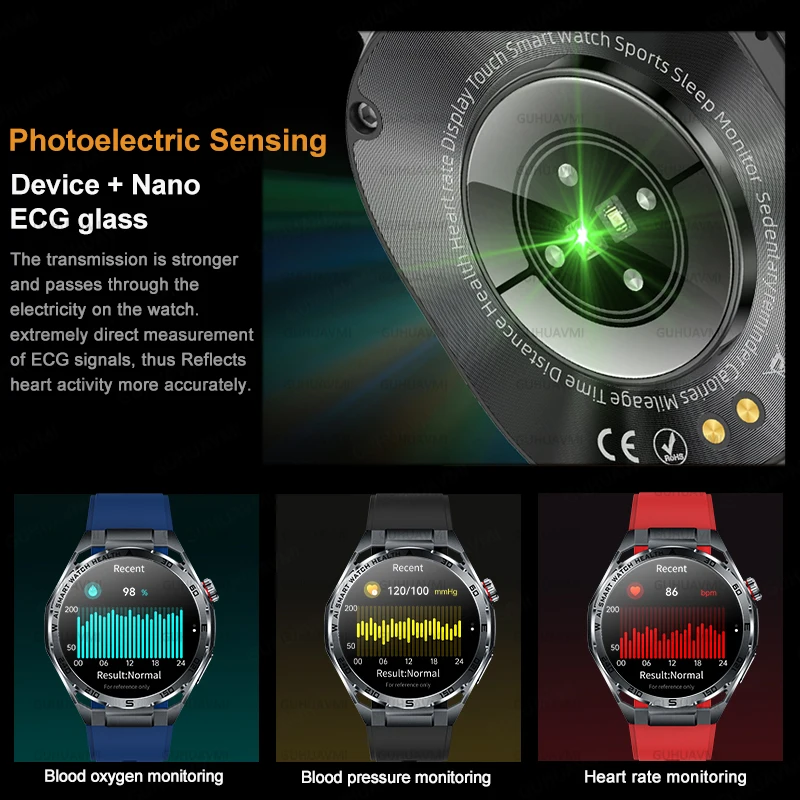 2026New Health Prrecise Diagnosis SmartWatch ECG+PPG Blood Pressure Uric Acid temperature 1.53-inch Screen Care Smartwatch Clock