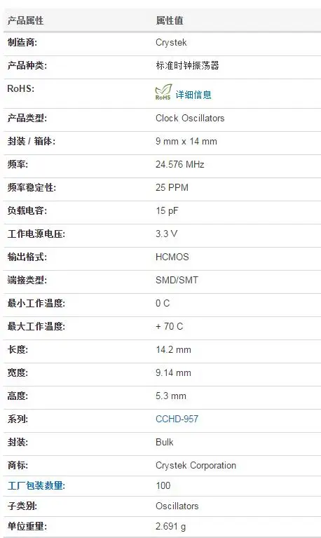CCHD-957-25-24.576MHZ 24.576M CRYSTEK Femtosecond crystal CMOS low phase noise