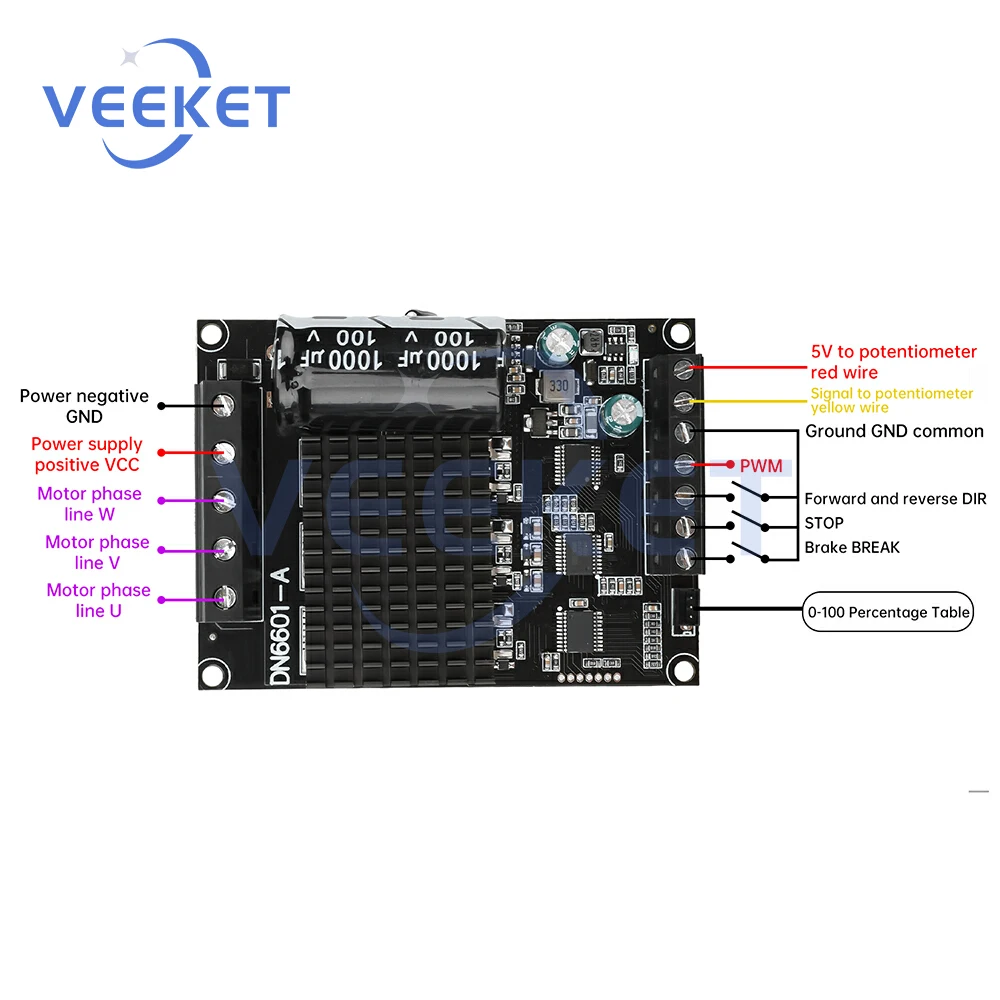 DC 6-80V BLDC Three Phase DC Brushless Motor Controller PWM High Power 1600W 20A Hall Motor Control Driver Board Motor Regulator