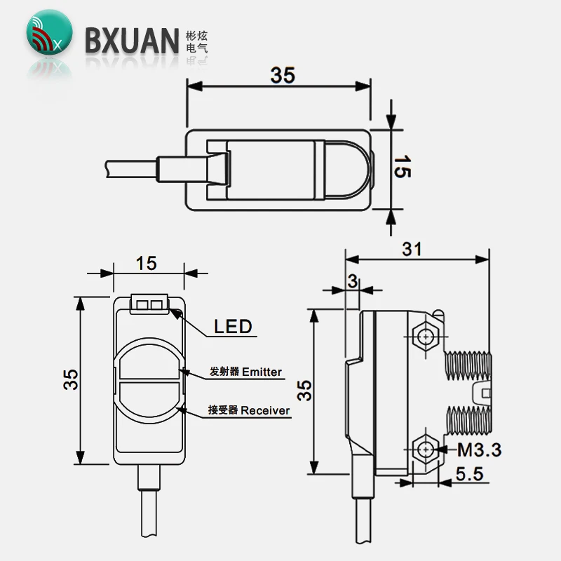 Available in NPN or PNP output; operates on 10-30V DC, customizable.