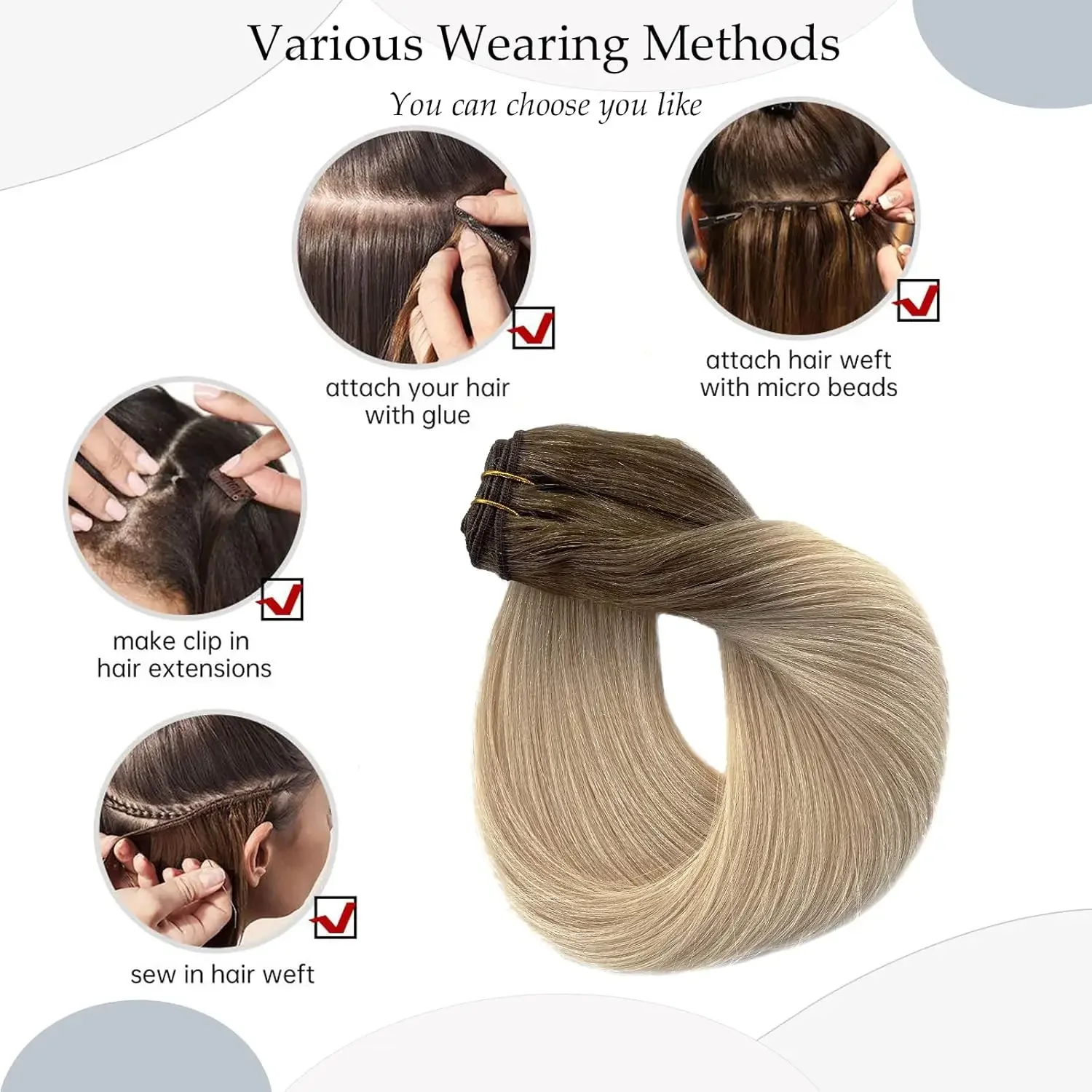 100G/PCS Genius Weft Vietnamese Hair Extension 16-28 Inches Blonde Ombre Straight Human Hair Weaves Bundle Extensions for Women