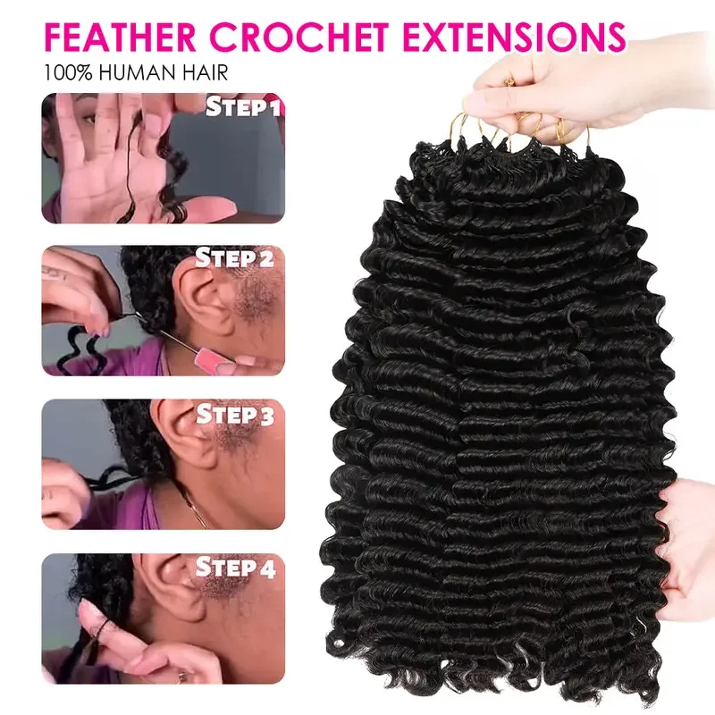 12A Feather Crochet Human Hair Pixie Curls Extensions Lightweight Pre Separated For Braids Small Spirals Curly Crochet Hair