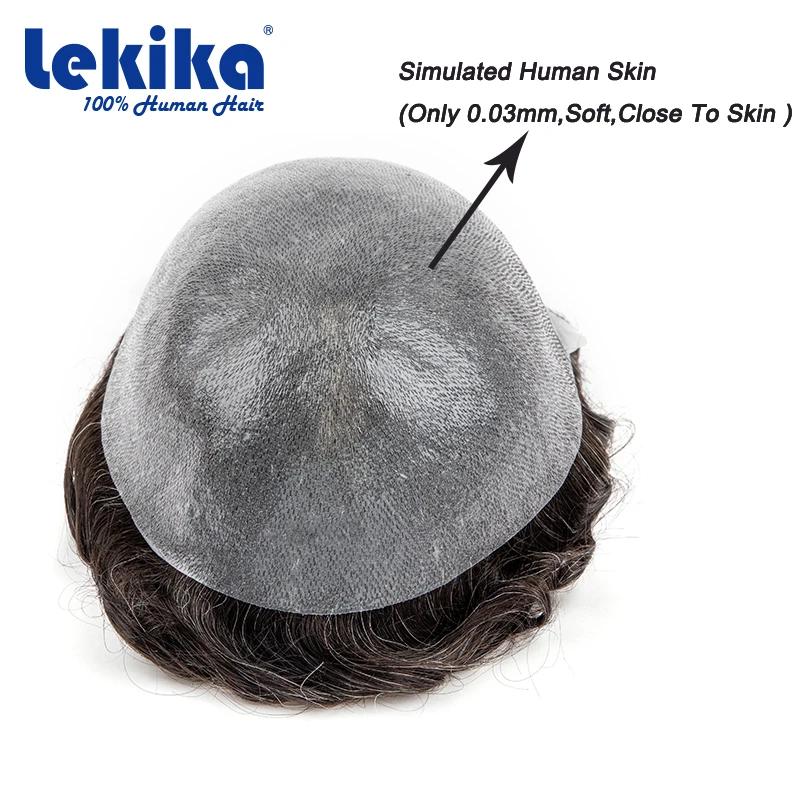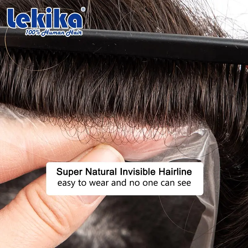 0.03mm PU Ultra Thin Skin Toupee Natural Men's Wig Invisible Male Hair Prosthesis V Loop Hair System For Man 6'' 100% Human Hair