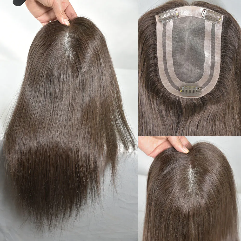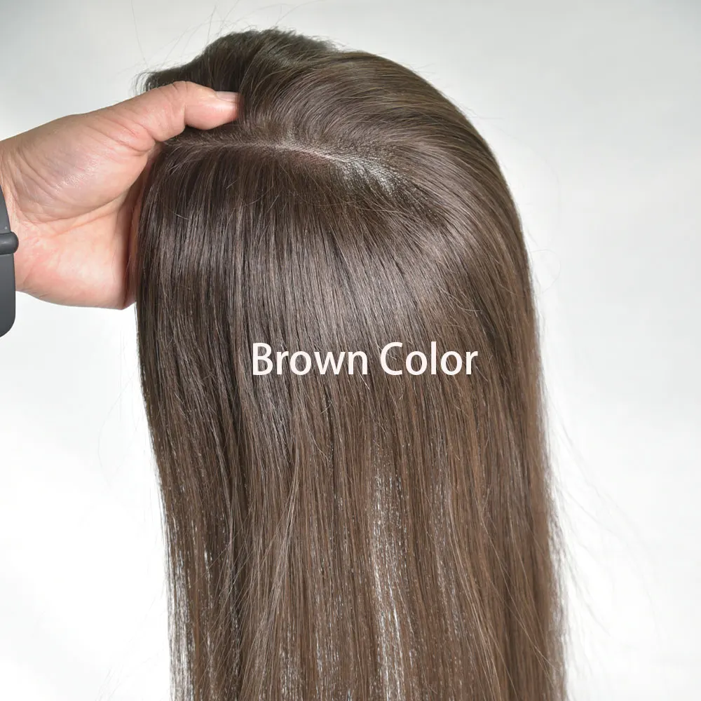 Hair Topper for Women Real Human Hair Clip in Hair Hairpieces for Women No Bangs Top Base Mono Lace 4x6inch Brown Color 14inch