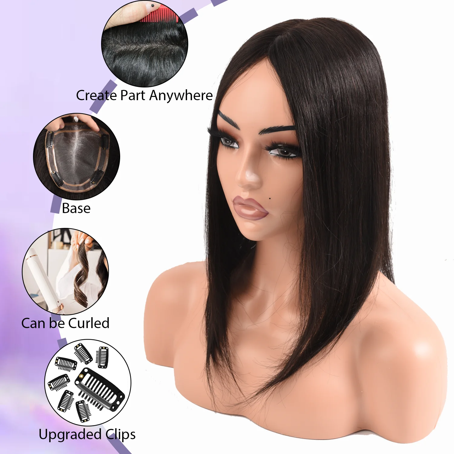 Mono Base Topper Remy Human Hair Topper For Women Clip In Extension Light Brown Hairpiece Seamless Coverage Undetectable Toppers