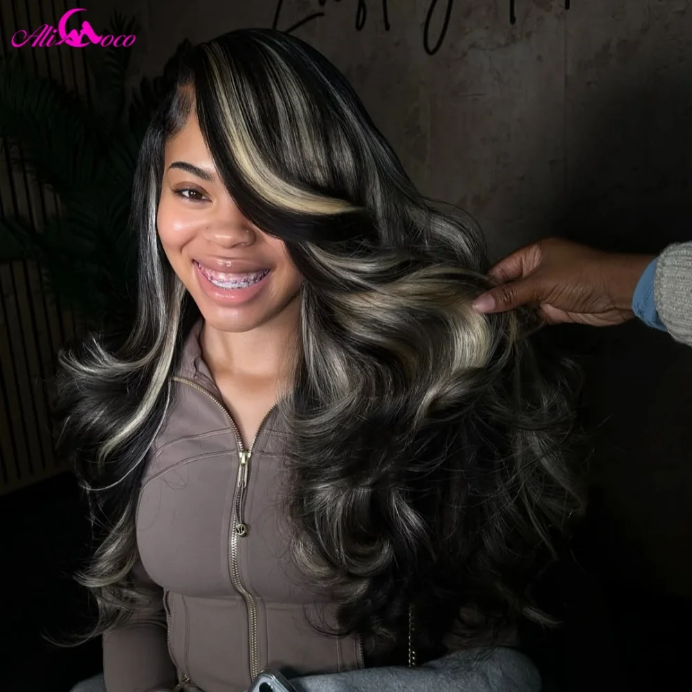 12A Blonde Highlight Wig Human Hair 13X4 13x6 Body Wave Lace Frontal Human Hair Wigs Pre plucked 180% Density