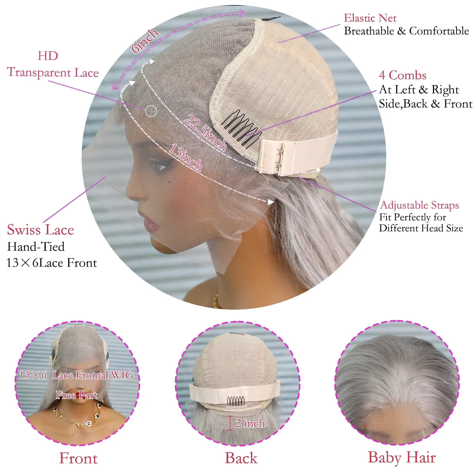 13x6 Straight Grey Lace Front Wig Human Hair Pre Plucked Remy Brazilian Silver Gray Lace Frontal Wig Body Wave Human Hair Wigs