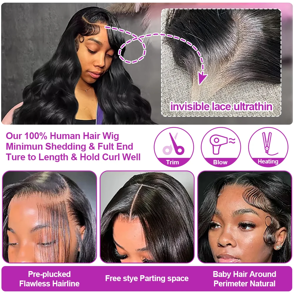 360 Full Lace Wig 100% Human Hair PrePlucked Body Water Wave 13x6 Hd Lace Frontal Wig Brazilian Hair For Black Women 250 Density