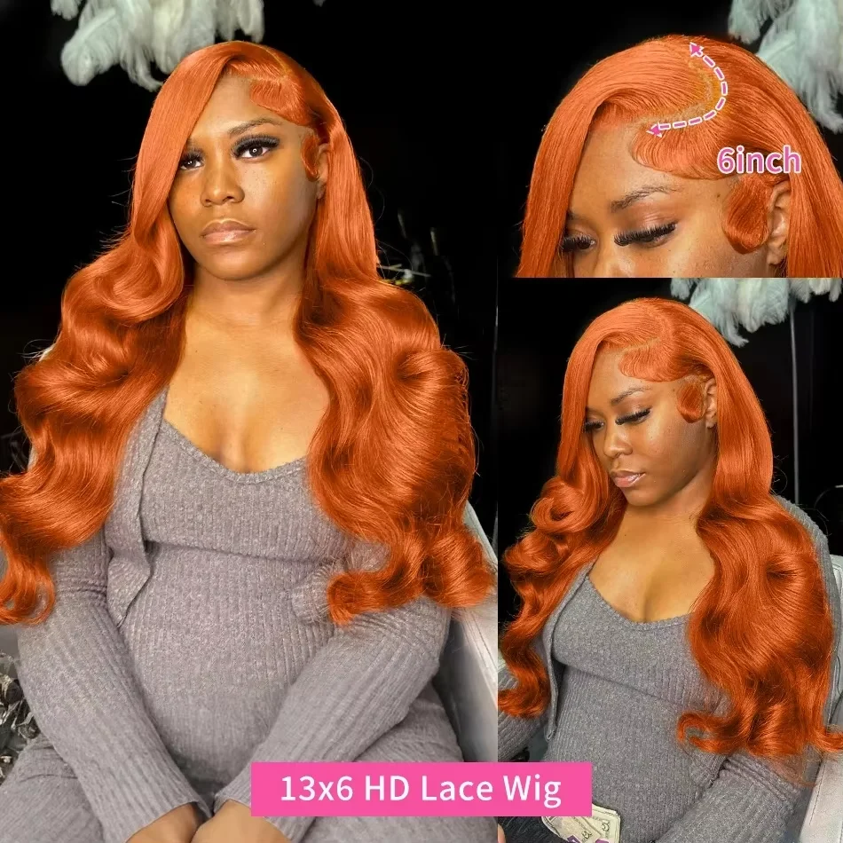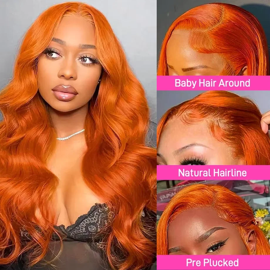 Body Wave Ginger Orange 13x6 Hd Lace Frontal Wigs Human Hair 100% Brazilian #350 Colored Wigs Pre Plucked For Women 200% Density
