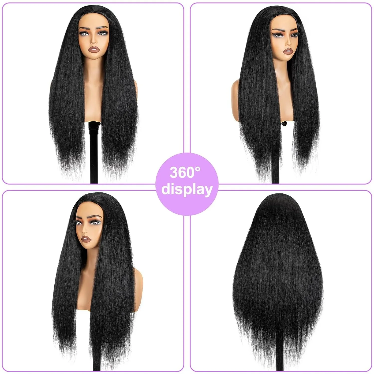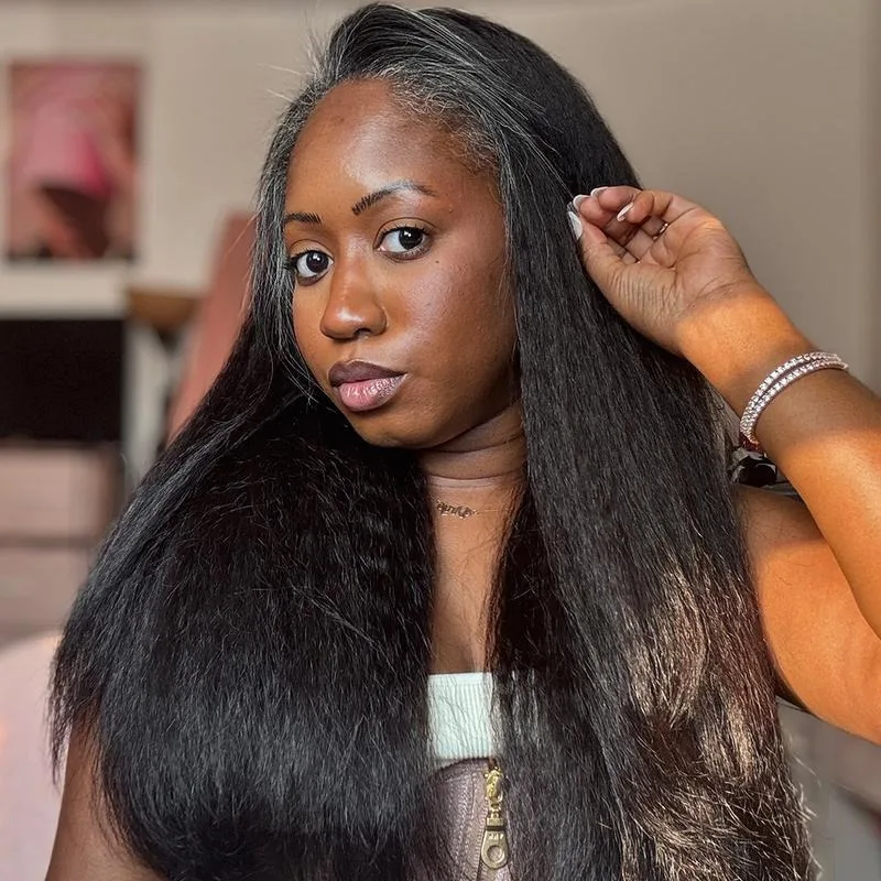 Kinky Straight Half Wig Human Hair 3 In 1 Seamless Flip Over Half Wigs for Women Ready to Go Headband Wig 180% Dense Drawstring