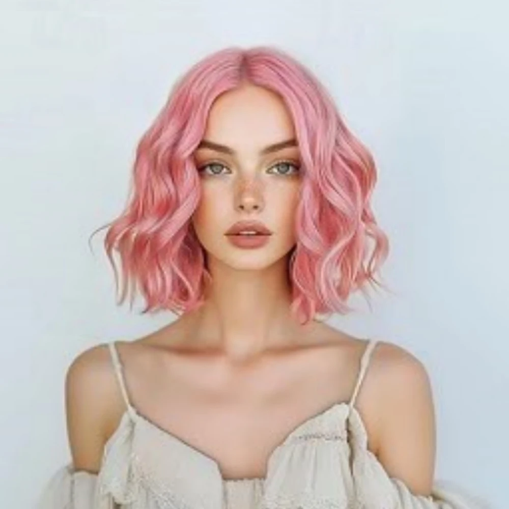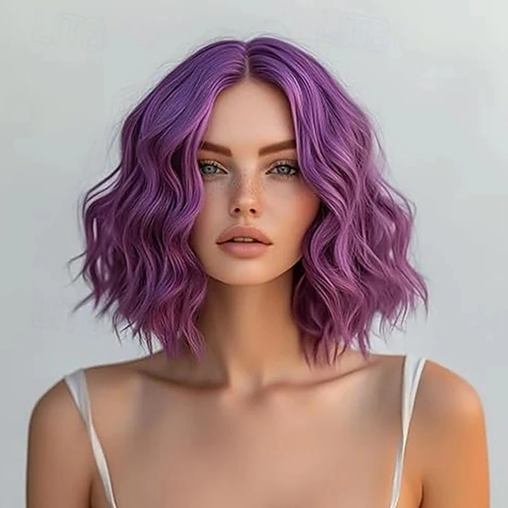 HAIRJOY Synthetic Hair Wavy Wigs for Women Short Middle Part Curly Bob Wig Heat Resistant Fiber Dress Up Wig for Party Use