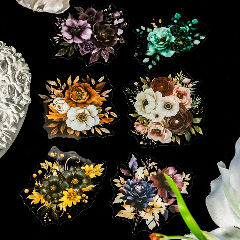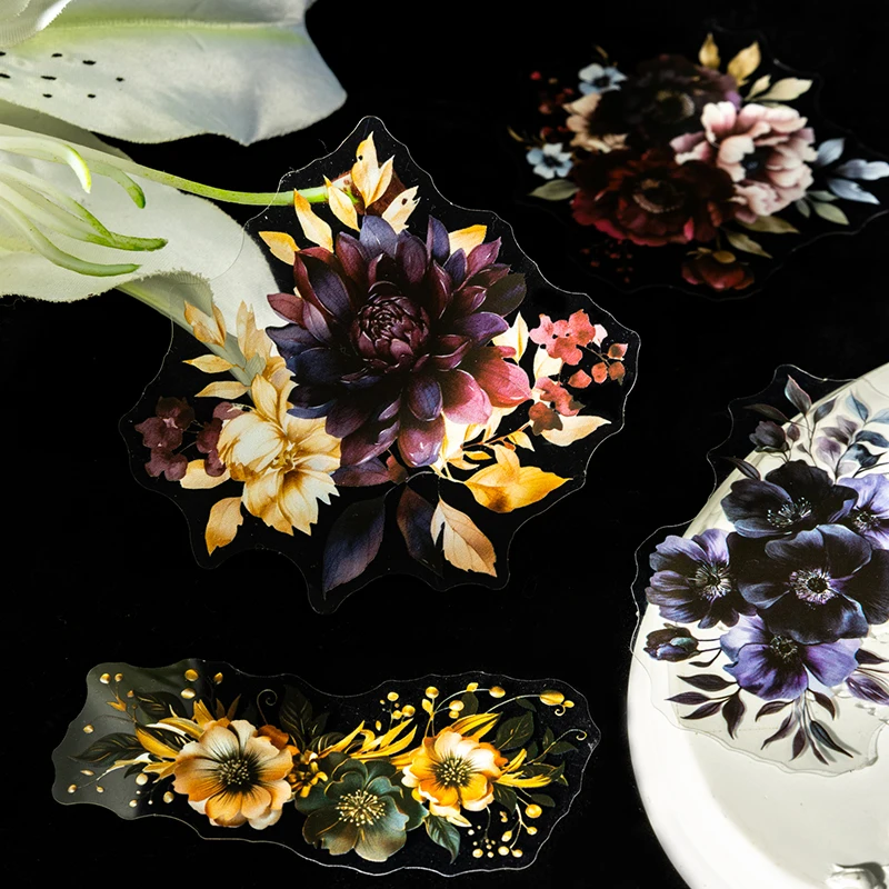 20 Sheets PET Large size Dark Flower Stickers Decorative handmade Material Diary Album Craft Scrapbooking Supplies